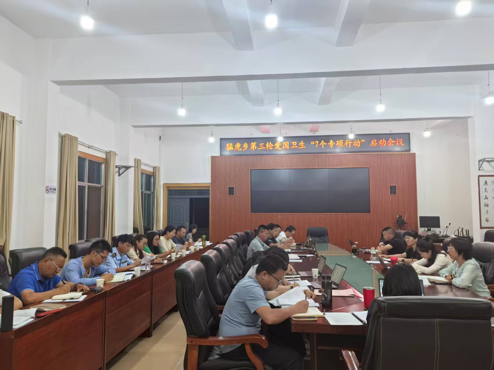 2025年6月12日晚,猛虎乡在乡人民政府四楼会议室组织召开第三轮爱国卫生“7个专项行动”启动会议。会议的召开标志着该乡全面启动第三轮爱国卫生“7个专项行动”。