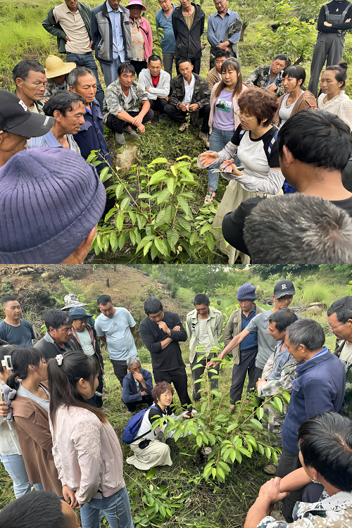 培训中,专家针对大樱桃嫁接后管理进行重点讲解。在修枝剪形环节,详细示范自然开心形、主干疏层形的修剪要点,强调休眠期“重整形”、生长期“重调控”的修剪策略,并现场演示拉枝、摘心等操作技巧;针对近期管理,围绕水分精准控制、有机肥科学施用、病虫害绿色防控等内容展开培训,结合本地气候特点提出具体解决方案,帮助农户提升果园精细化管理水平。