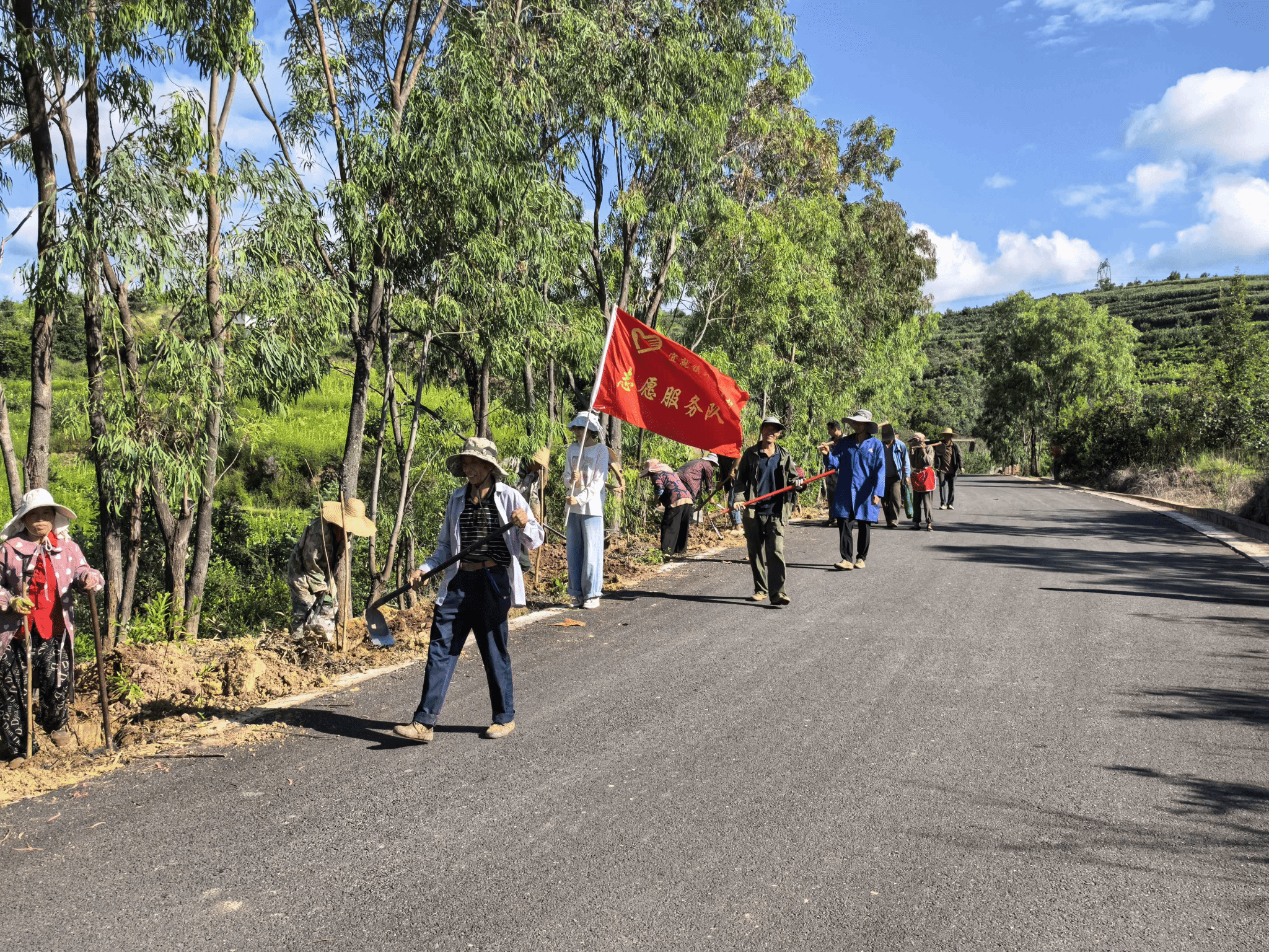 “以前路边光秃秃的,现在栽上了香樟、蓝花楹、木棉,以后花开了肯定好看,游客来了也有地方逛!”参与植树的村民李大姐一边扶正树苗,一边笑着说道。