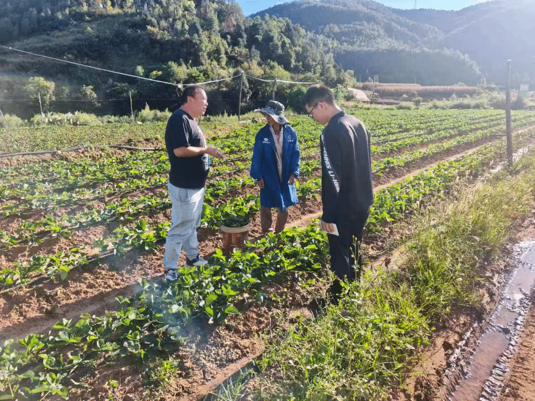 中午,秋季的太阳温暖地洒在迤帕拉村每一片草莓地上,村民起平清在自家草莓地里面摘除老叶、病叶、枯叶和匍匐茎,他介绍道:“现在部分草莓已经开花了,摘除老叶,病叶等,减少养分消耗和病害传播,后续将盖上农膜,确保今年草莓获得好收成。”