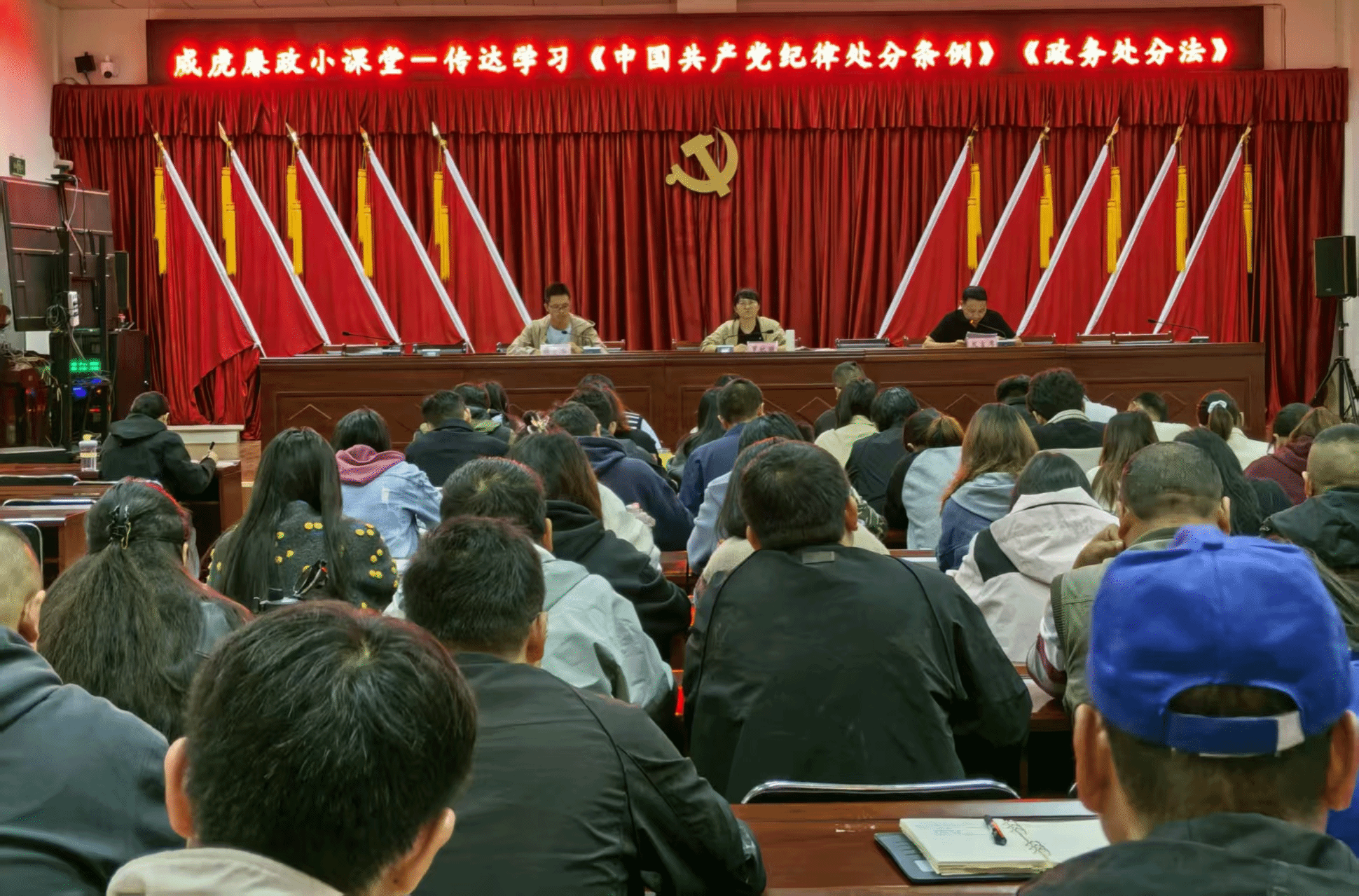 铸魂:强化“第一议题”学习。翻开乡党委的会议记录和干部职工会议记录,从“‘十四五’规划知多少”到“如何展望‘十五五’规划”“第一议题”学习栏密密麻麻记载着曾经的学习内容。乡党委书记罗秋丽介绍,通过58场专题宣讲和“威虎廉政小课堂”,全乡机关党员干部对国家的政策方针更加熟悉,明白了什么是政策的红线和底线,干起工作有了清晰的目标指引。“警示教育不是走过场,而是要让干部们时刻绷紧弦。”乡纪委书记丁学超翻开他的廉政日志说道。