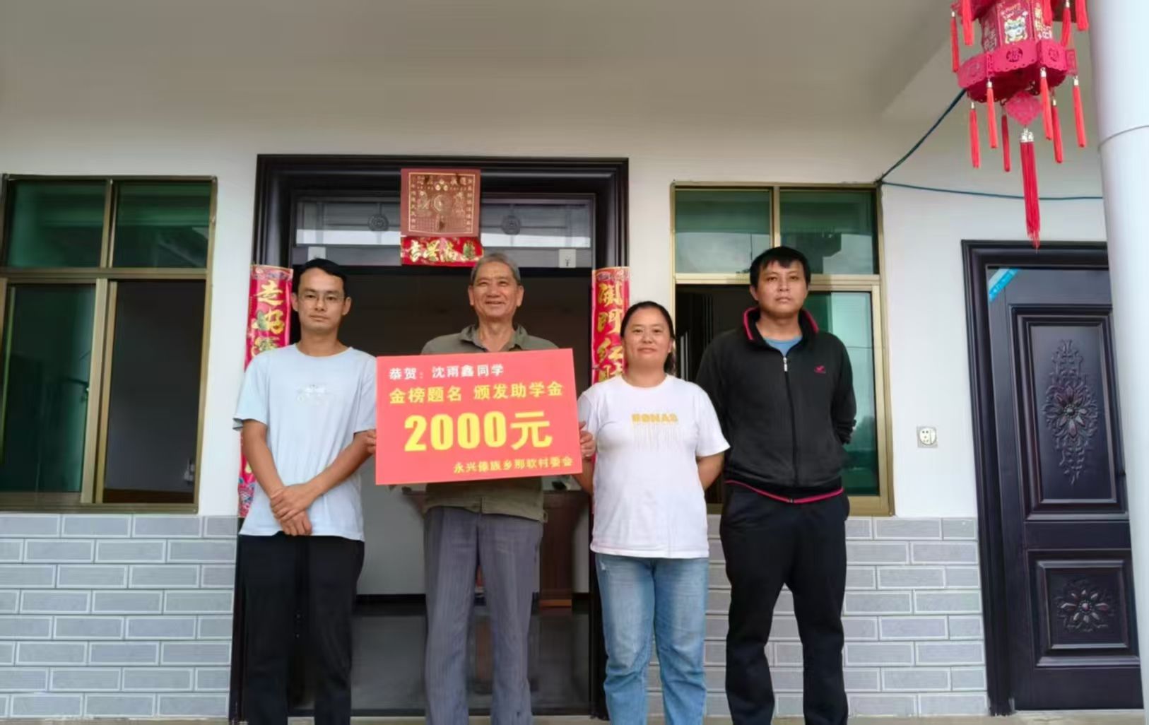 金秋时节,硕果盈枝。连日来,永仁县永兴傣族乡12个村委会的干部带着满满的祝福与期望,走进一个个洋溢着喜悦的家庭,将绣有“金榜题名”等字样的锦旗和6.44万元奖学金,亲手送到38名2025年新录取大学生家属手中。这场跨越村落的“送奖上门”行动,不仅送去了精神奖励和“真金白银”的支持,更以实际行动诠释尊师重教的乡风文明,用“村光”照亮学子们的求学之路,为乡村振兴注入蓬勃的青春力量。