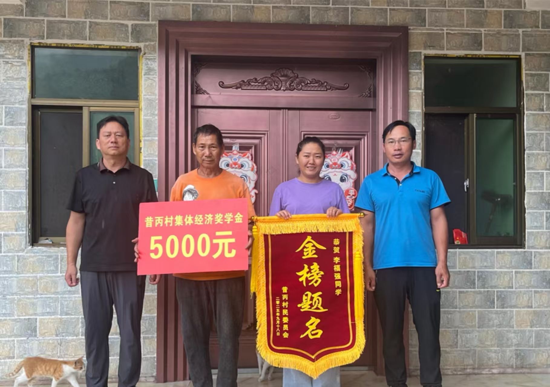“孩子能考上大学,不仅是家里的喜事,更是咱村的骄傲!这笔奖学金是全村人的心意,盼着他在外面好好学本事,将来能为家乡做事!”在学生家中,村委会成员握着家长的手,话语里满是真诚与期许。接过锦旗与奖学金,学生和家长脸上洋溢着激动的笑容,一名本科录取新生坚定地说:“谢谢村里的支持,我到了大学肯定努力学习,毕业以后如果有机会,一定回来为家乡发展出份力!”