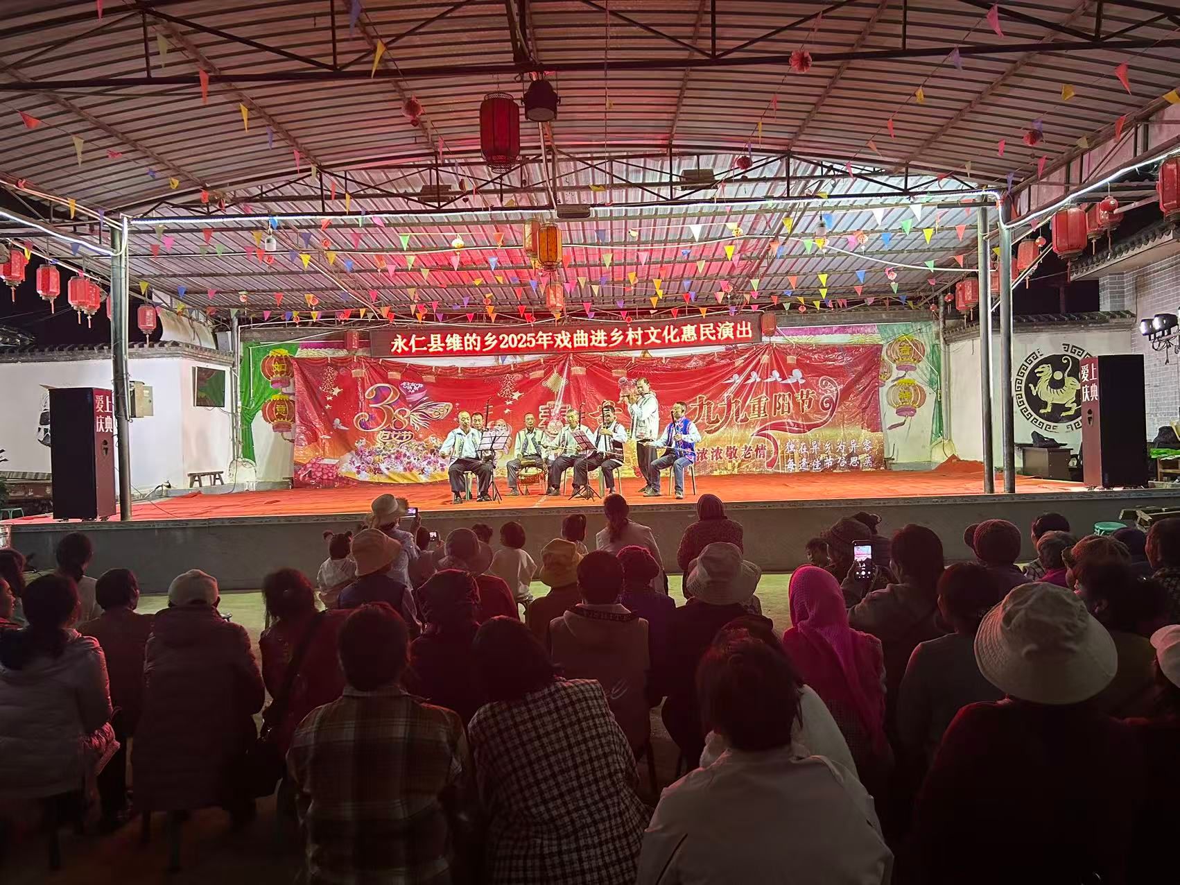 夜晚降临,维的村结合银发志愿服务队,自编自演剧目,内容丰富多彩。《我爱家乡好》三句半,乡亲们用地道乡音细数家乡变迁,“桑榆未晚、银发担当”的豪情在朗朗节奏中传递,眼角眉梢满是共鸣;广场舞《跑四回》旋律响起,身着彩衣的阿姨们便踏着轻快步调起舞,旋转跳跃间尽显活力;古典舞《梅花赋》则以水袖轻扬、身段婉约的演绎,赢得现场观众阵阵喝彩。整场演出既有少年儿童的蓬勃朝气,又有银发群体的岁月沉淀,乡土气息与文化韵味交织,成为维的乡文明实践的生动缩影。