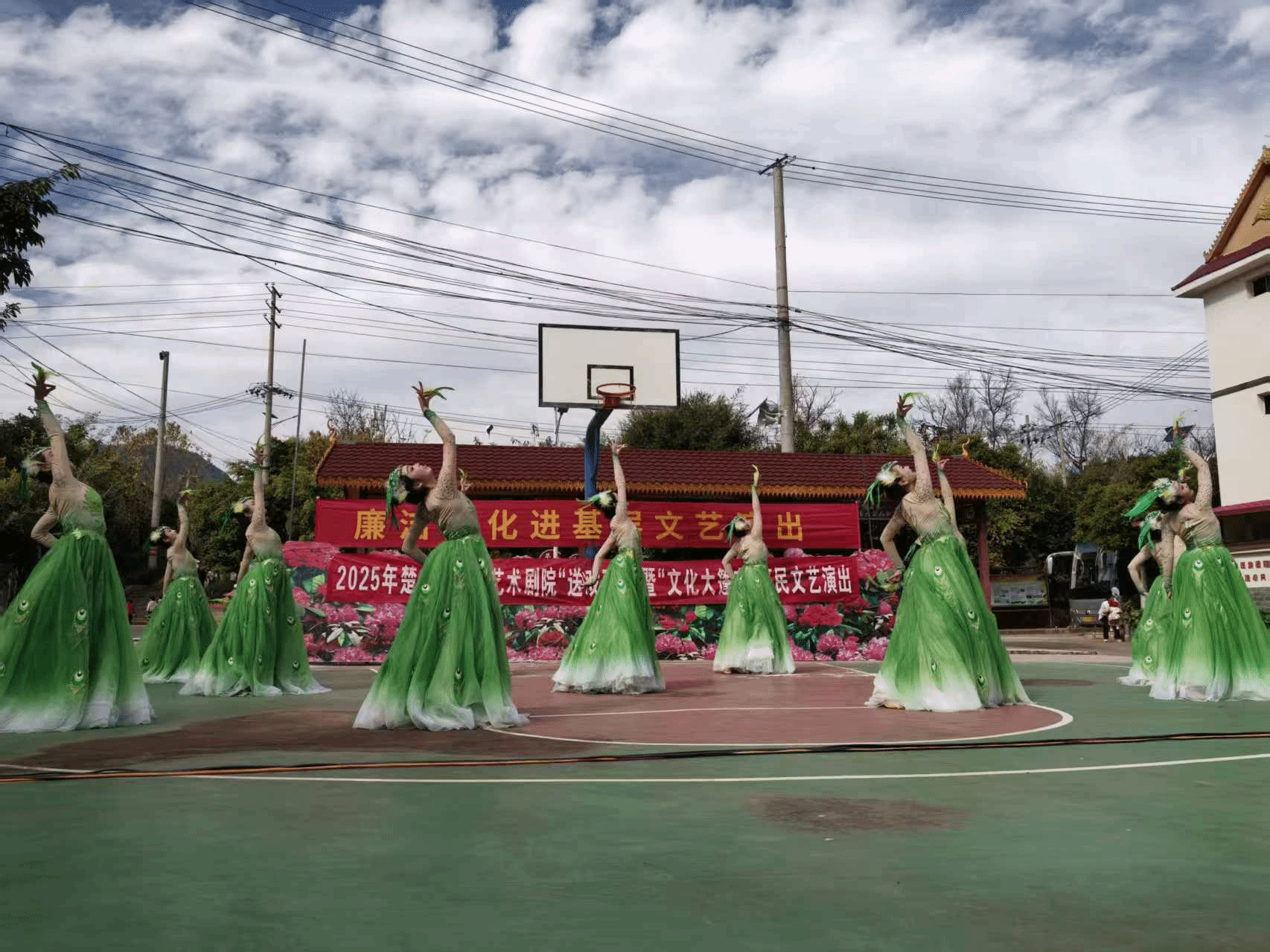 冬日的暖阳洒在猛虎乡福兴村的篮球场上,当地傣族群众早早围坐在舞台前。11日上午,楚雄州民族艺术剧院“文化大篷车”开进这个傣族移民新村,为当地群众带来一场融合多民族艺术精髓的文化盛宴。