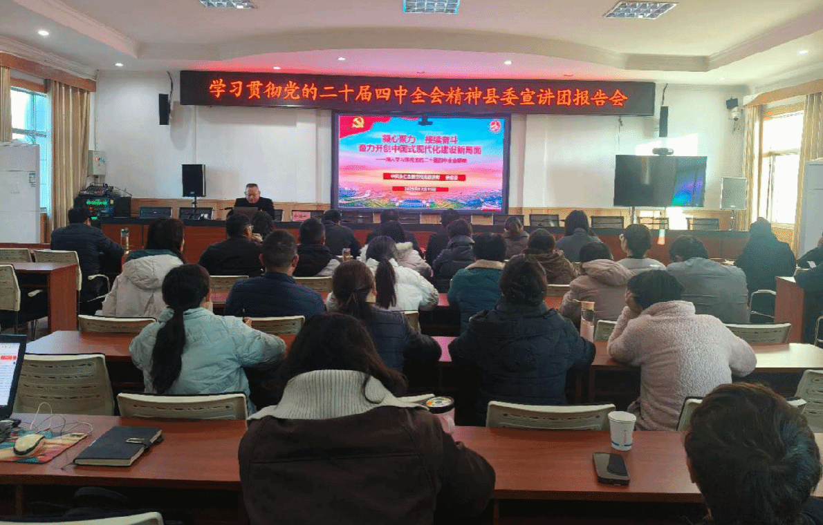 一堂“深入浅出”辅导学,把握精髓拓深度。主动“请进来”提升认识高度,邀请县委宣讲团成员开展专题宣讲与互动交流。面向全体干部职工的系统讲解,帮助大家从历史维度、理论深度上把握全会精神的宏阔视野与战略部署;而面向文艺骨干的互动式交流,则聚焦基层宣传文化工作实际,探讨如何用非遗文化传承、乡村题材创作等形式,让理论宣讲“活”起来、“暖”起来,有效激发了基层宣传队伍的创作热情与传播智慧。