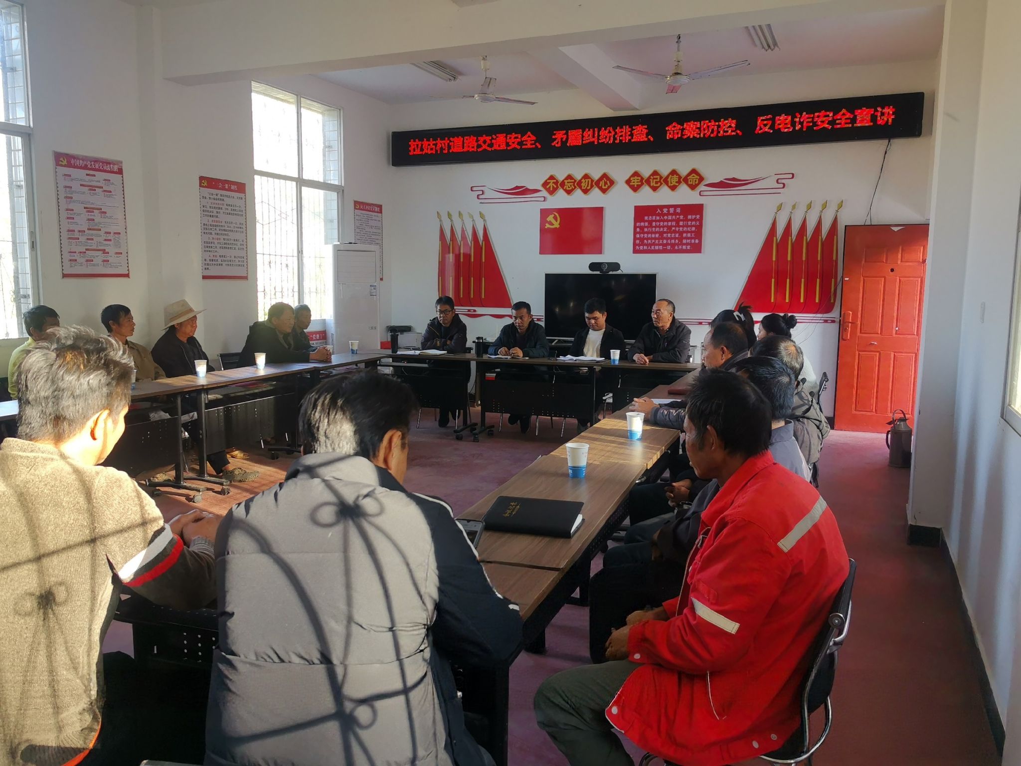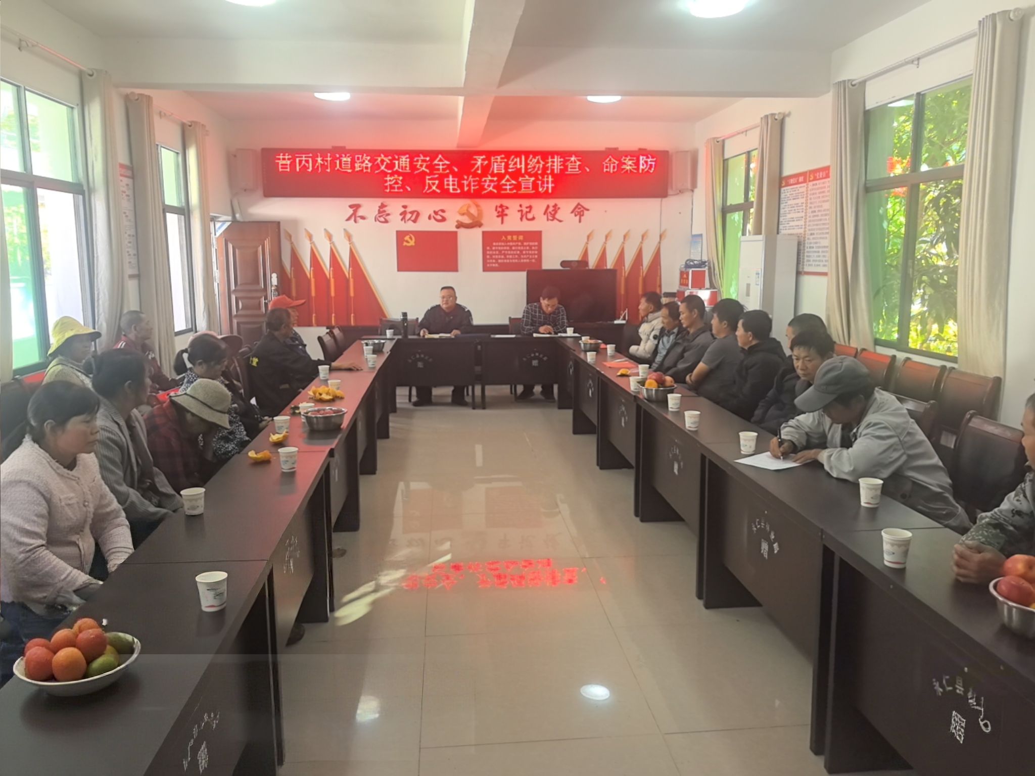 没有高高的讲台,没有单向的灌输,只有一圈圈围坐的圆桌凳、一声声暖心的乡音、一次次坦诚的交流。连日来,永仁县永兴傣族乡12个村委会的会议室里,总能看到这样温情的场景,派出所民警与村民代表团团围坐,以“拉家常”的方式,把交通安全、矛盾纠纷排查、命案防控、反电诈等安全知识,送到群众心坎上,让小雪时节的傣乡涌动着阵阵暖意。