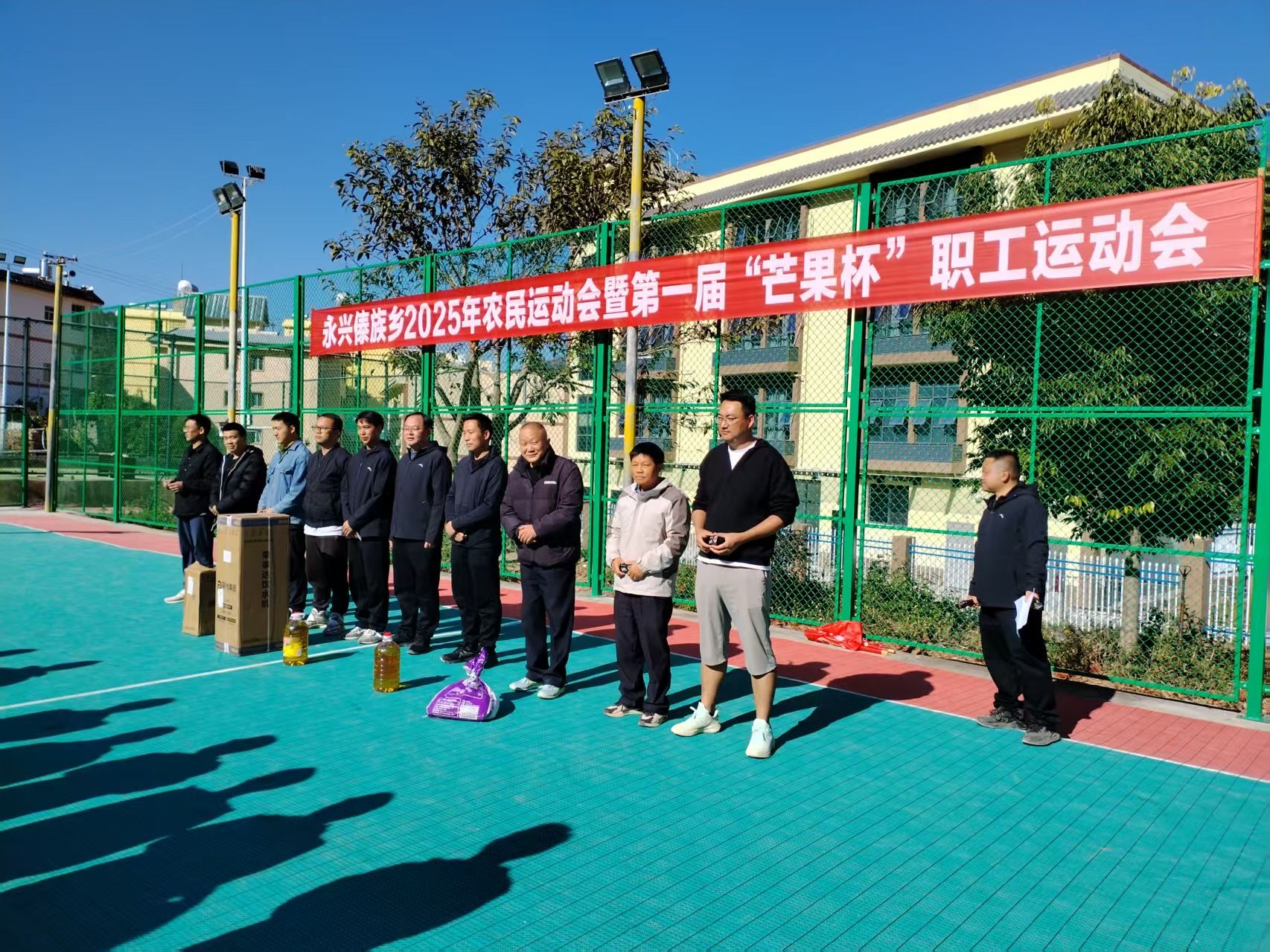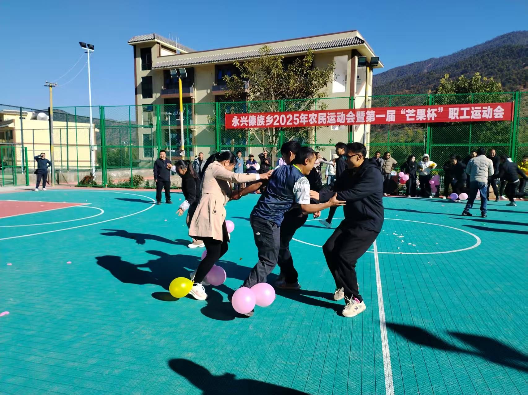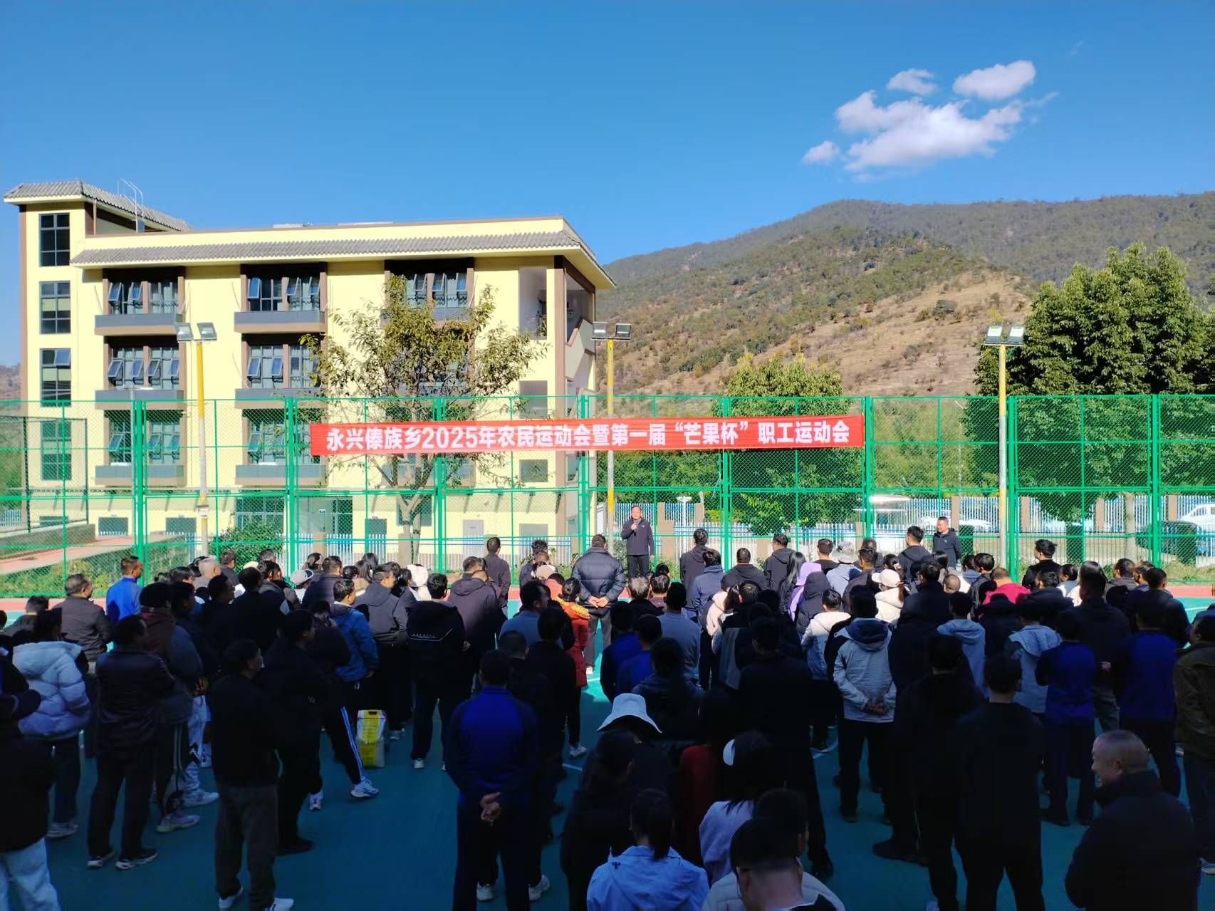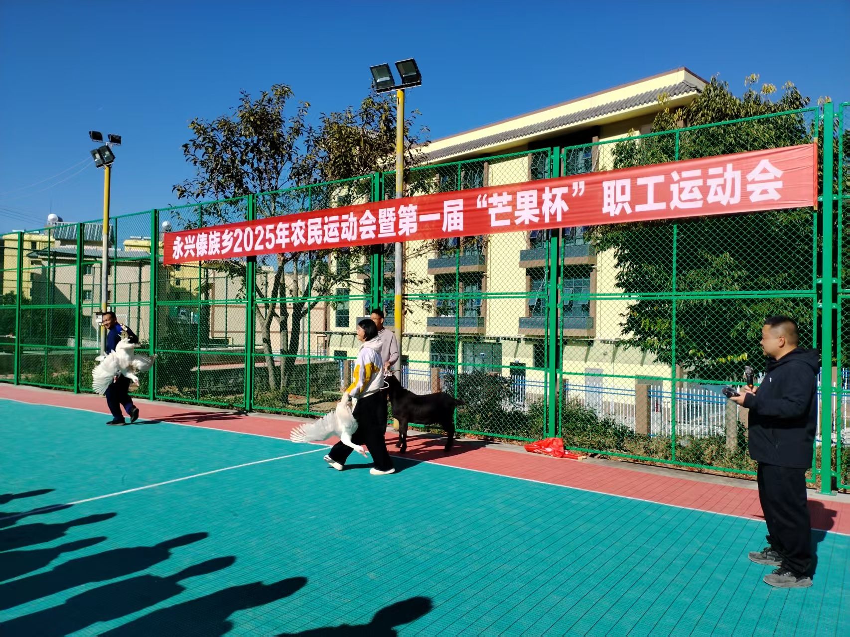 冬阳和煦,洒满傣乡;赛场欢腾,凝聚人心。2025年12月30日至2026年1月1日,永仁县永兴傣族乡2025年农民运动会暨第一届“芒果杯”职工运动会成功举办。三天里,呐喊与欢笑在乡运动场上空回荡,而颁奖环节身披红绸的黄牛、肥壮的山羊、活蹦乱跳的鸭子,以其浓郁的乡土气息,成为最亮眼的“奖杯”。这场充满生活温度与泥土芬芳的体育盛会,不仅展现了拼搏风采,更赛出了干群同心、邻里互助、共促振兴的文明新风。