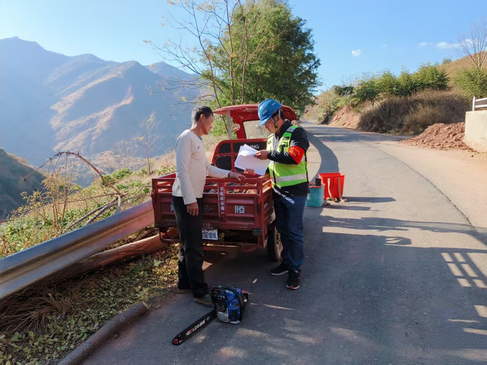乡村公路上,“红袖标”们在急弯、路口等关键点位定点值守,同时开展流动巡查。他们对过往车辆逐一进行安全提醒,重点劝导农用车违法载人、摩托车不戴头盔等违法行为,结合典型事故案例以案释法,用通俗易懂的语言向驾驶员讲解交通安全的重要性。遇到不理解的群众,干部们耐心沟通、柔性劝导,既坚守安全底线,又彰显人文关怀,让交通安全理念深入人心。
