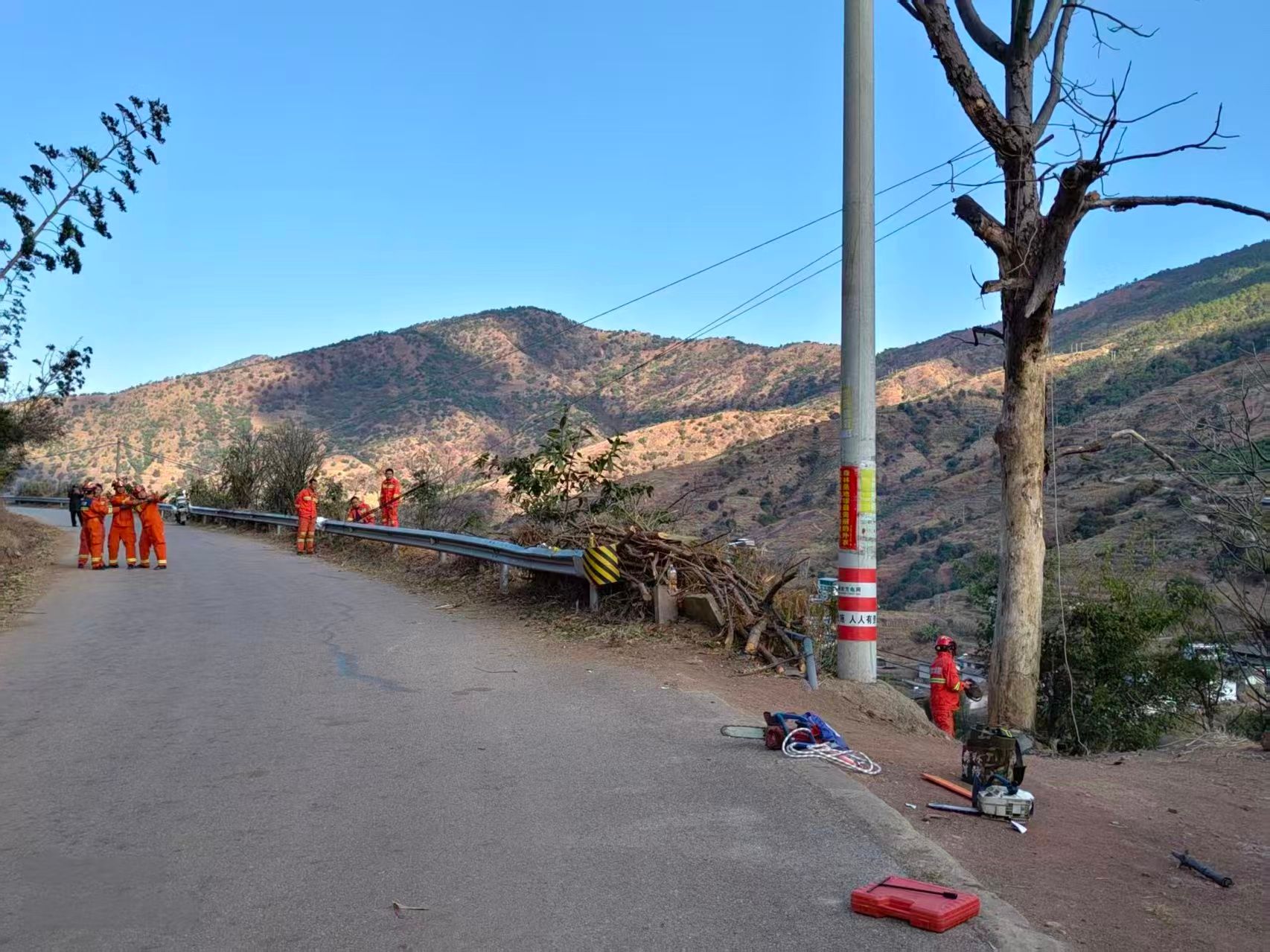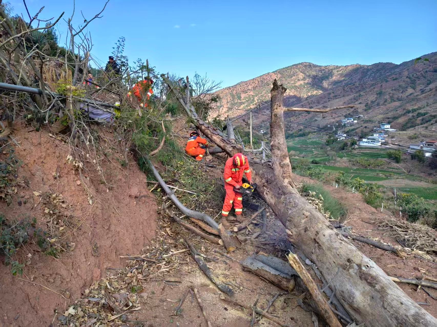 民生无小事,枝叶总关情。连日来,在永仁县永兴傣族乡的乡间道路、村落周边、校园旁,一抹抹跃动的“橙色”成了最温暖的风景。身穿橙色救援服的乡消防综合应急救援队队员们,手持油锯、砍刀,正专注地为村庄“梳妆理容”——将一棵棵枯死、病危的树木安全移除。油锯轰鸣化作安心守护的交响,倒下的枯木为安全宜居的环境让路。这场聚焦“微风险”、办好“实在事”的专项行动,让隐患“平稳下岗”、安心“稳稳上岗”,以基层治理的“绣花功夫”,为乡村振兴注入温暖而坚实的安全力量。