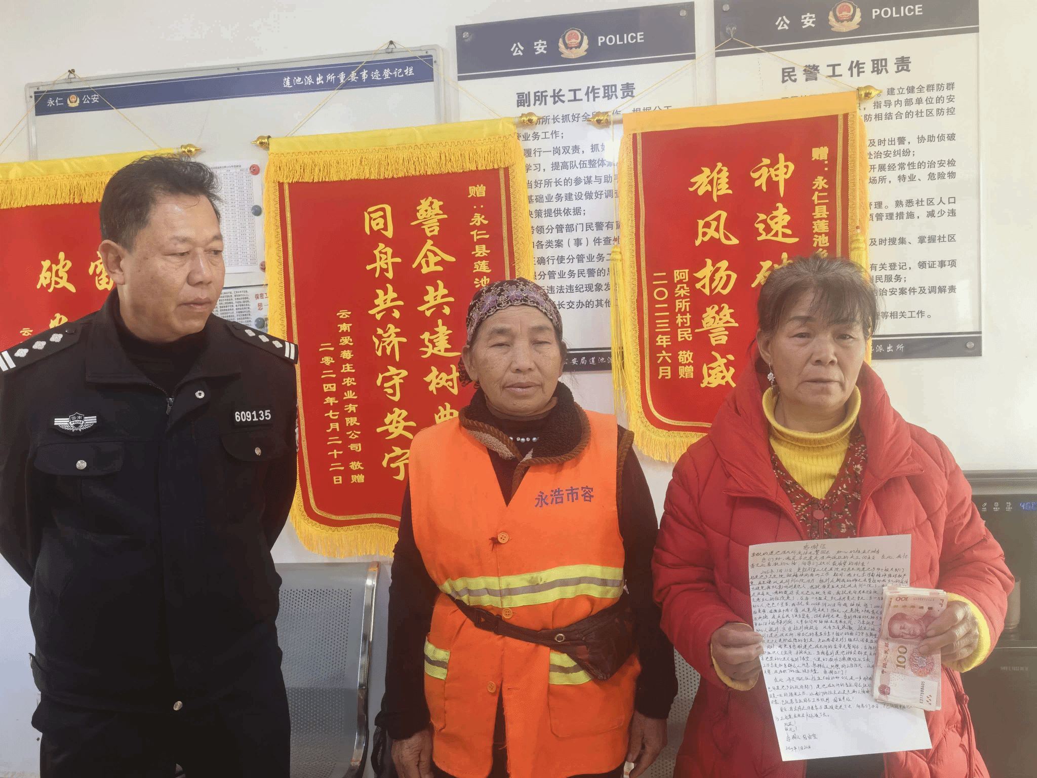 李元芬作为一名环卫工人,日常穿梭在莲池乡街道,用汗水守护着莲池街的整洁。面对意外捡到的钱款,她始终坚守着朴实的道德准则,“不是自己的钱,一分都不能要,丢钱的人肯定很着急”。接到钱款后,莲池派出所民警立即行动,积极组织人员宣传此事寻找失主。莲池乡全体干部职工也通过各种渠道不断扩大寻主范围,用高效的行动践行着为群众办实事的初心。