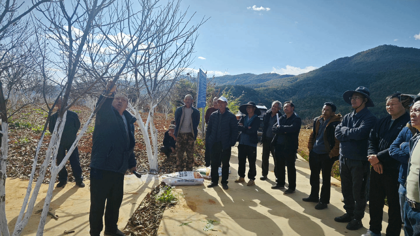 进入现场实操环节,专家走进板栗园,选取不同长势的板栗树作为示范样本,亲自示范修剪手法、涂白操作流程,每一个步骤都讲解得清晰透彻。种植户们热情高涨,纷纷围绕在专家旁边,认真观摩学习,不时提问交流。大家还主动上手实践,专家则在一旁逐一指导,及时纠正不规范操作,现场解答种植户在日常管护中遇到的各类疑难问题,真正实现了“理论落地实操、疑问当场解决”。