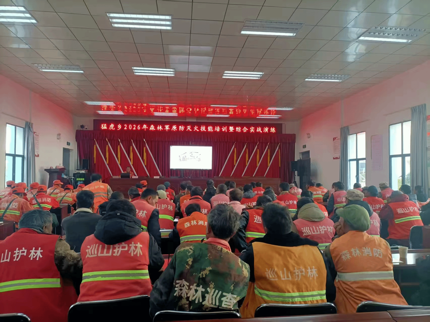 为全面提升森林草原火灾综合防控和应急处置能力,切实保障人民群众生命财产与生态资源安全,1月28日,猛虎乡组织开展了一场集专业培训与综合实战于一体的森林草原防灭火演练活动。乡人民政府相关领导、乡武装部长、乡半专业扑火队及全体护林员等共计100余人投入这场淬炼本领、守护青山的“大练兵”活动。
