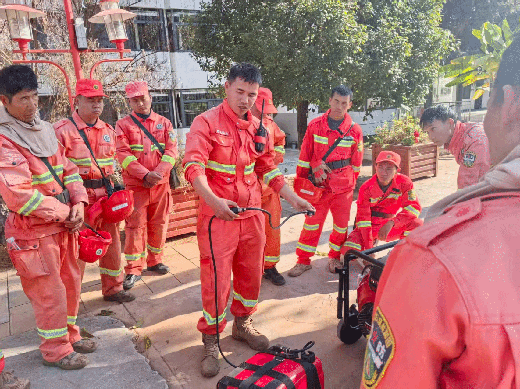 从火情接报、应急启动到队伍快速集结,从火场勘察研判、扑救方案制定到多种战术协同应用,演练环节紧凑、衔接有序。现场重点演练了“以水灭火”战术、扑火水网快速组建、风力灭火机等专业机具的操作使用与协同配合,穿越火线以及紧急情况下的安全避险和火场彻底清理。