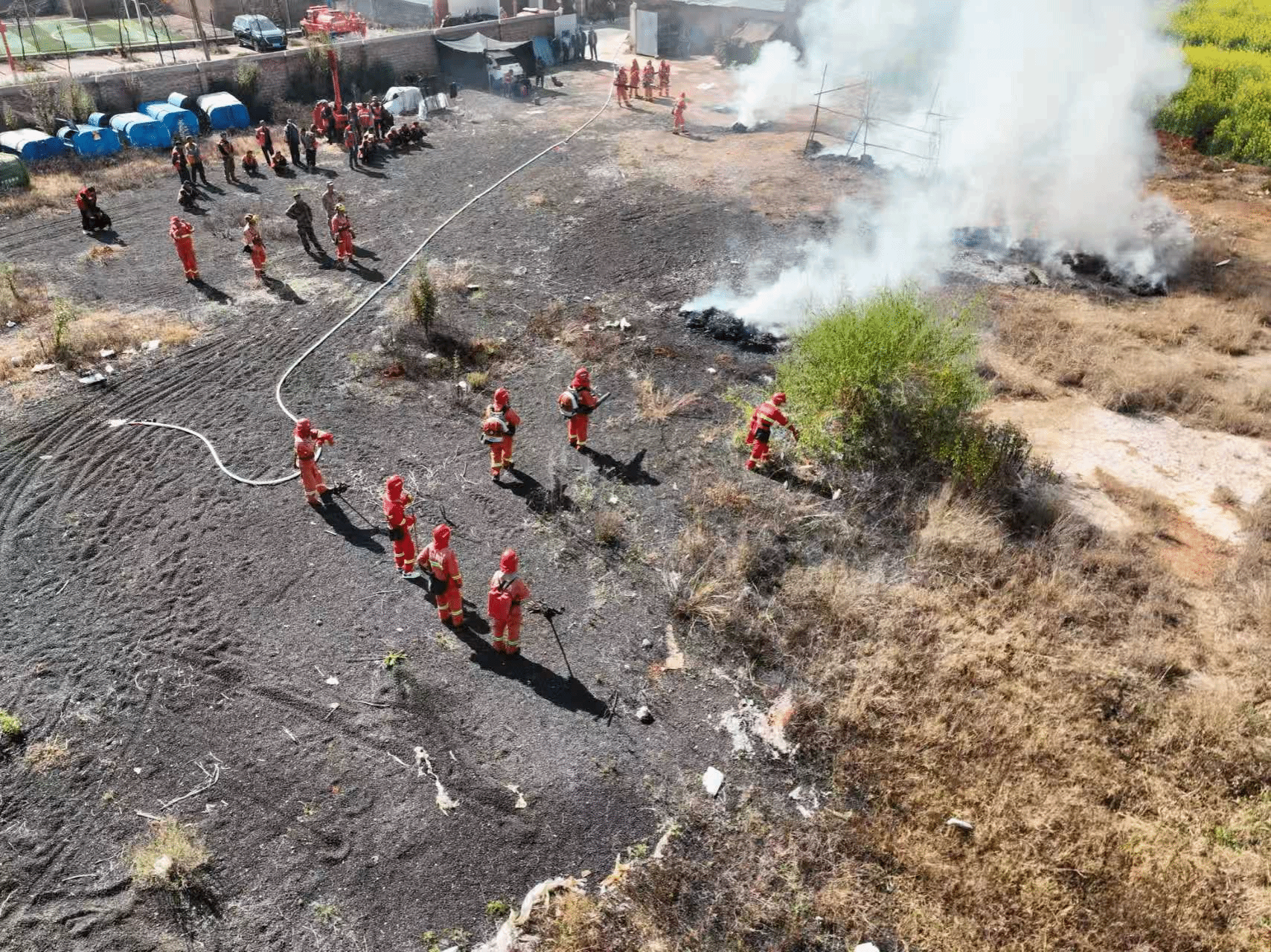 演练场上,各扑救小组闻令而动、配合默契。指挥员指令清晰,队员操作熟练,水枪喷射出强有力的水龙,风力灭火机轰鸣作响,协同作战下,“火头”被迅速压制、“火线”被有效切断。整个过程紧张有序,充分展现了队伍在模拟复杂环境下的快速反应、协同作战和高效处置能力。
