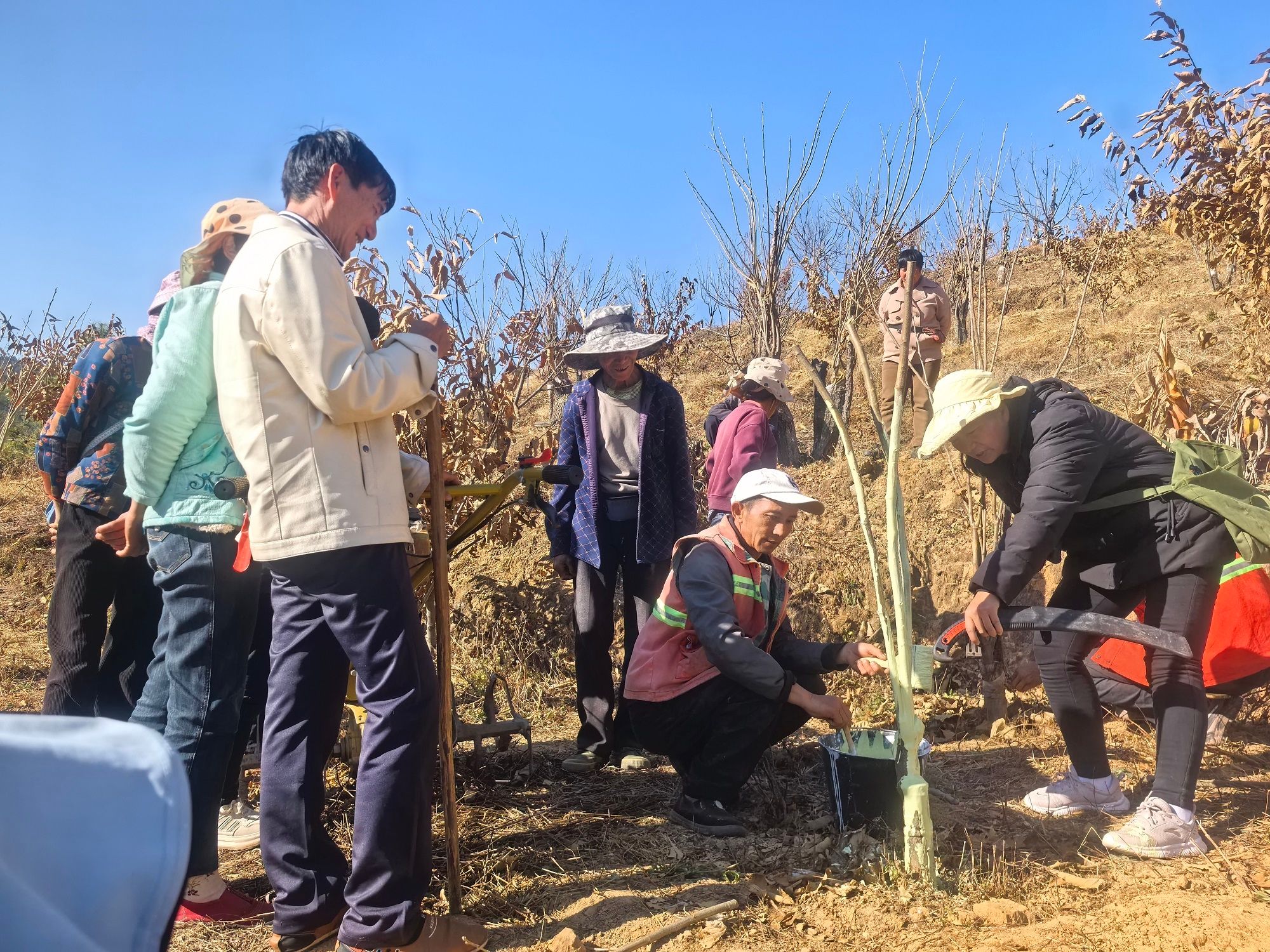 本次培训坚持问题导向重点围绕上一年度管理中出现的修剪不规范、嫁接后管理不到位、涂白剂配比不当、病虫害防治滞后等突出问题展开。县级技术专家现场演示嫁接、修剪、涂白等关键技术,手把手指导参训人员掌握操作要领,并结合不同树势讲解差异化修剪方法,明确疏枝留枝原则,推动田间管理向标准化、精细化迈进。