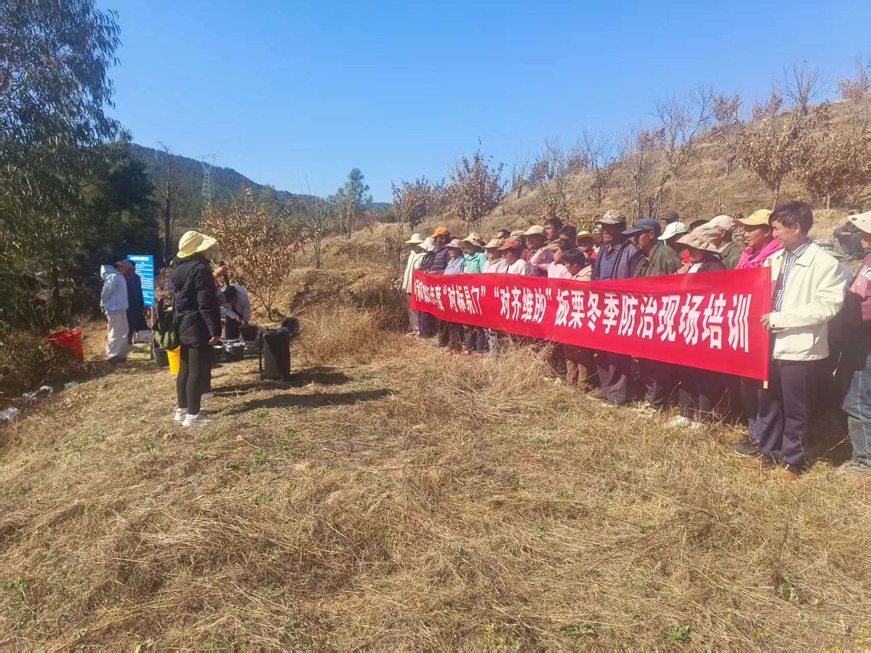 为切实破解板栗冬季管理技术瓶颈,提升产业科学种植水平,2026年1月12日,中和镇举办对标先进、聚焦短板的板栗冬季防治管理现场培训会,邀请县级技术专家现场授课。镇村农业技术员与各村板栗种植大户60人齐聚田间地头,通过“实地讲解+亲手实操+互动答疑”的沉浸式教学模式,上了一堂实用、高效的冬管技能课。