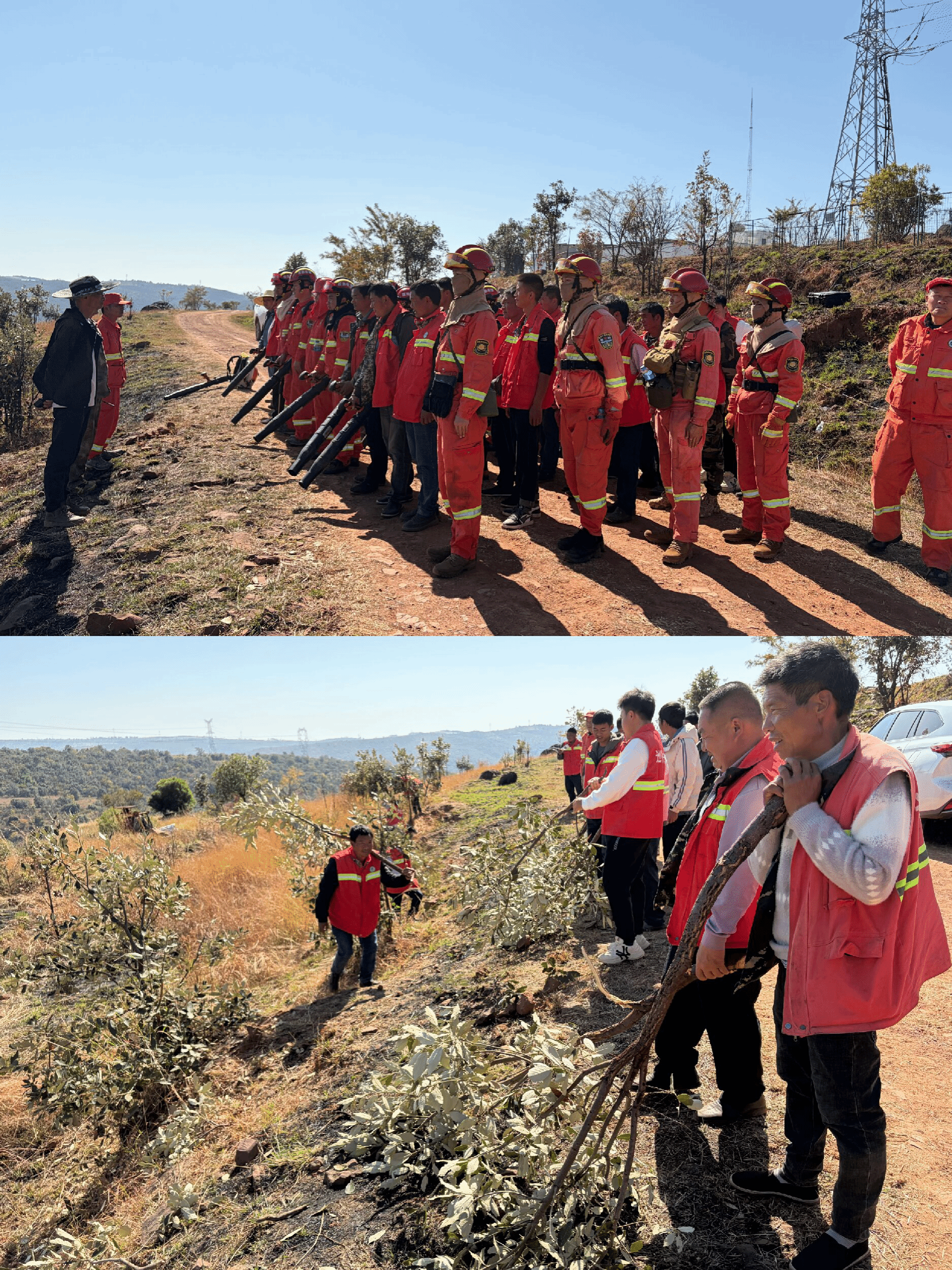 参训护林员按村划分组别开展实战演练,在专业救援队的现场指导下,于指定演练场地完成防火隔离带拉设作业,模拟火势逐步扑灭的实战场景。演练过程中,各位护林员态度严谨认真,主动开展互动交流,针对实操中遇到的技术难点及时向教练组请教,现场形成浓厚的比学赶超学习氛围。通过反复示范、手把手教学的方式,确保每位参训护林员,尤其是新上岗人员,都能熟练掌握实操技能,切实达到以演促练、以练提能的预期目标。
