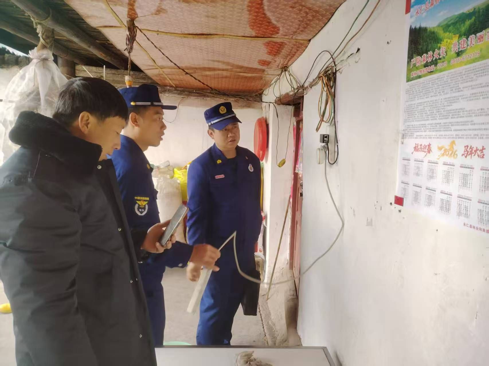 春节前夕,消防救援队员踏遍全乡村寨,开展消防安全“敲门行动”。在农户家中,队员们逐户检查电线线路、用火用电、柴草堆放等情况,现场整改私拉乱接电线、火源靠近可燃物等隐患;在留守老人家中,主动更换老旧插座、整理杂物角落,让安全“看得见、摸得着”。针对冬季一氧化碳中毒易发特点,队员们用傣汉双语,结合典型案例向老人们讲解预防知识,发放安全提示卡,叮嘱大家绷紧安全弦。老人们握着队员的手连声道谢:“你们年年都来,帮我们排查隐患,有你们在,过年心里踏实。”