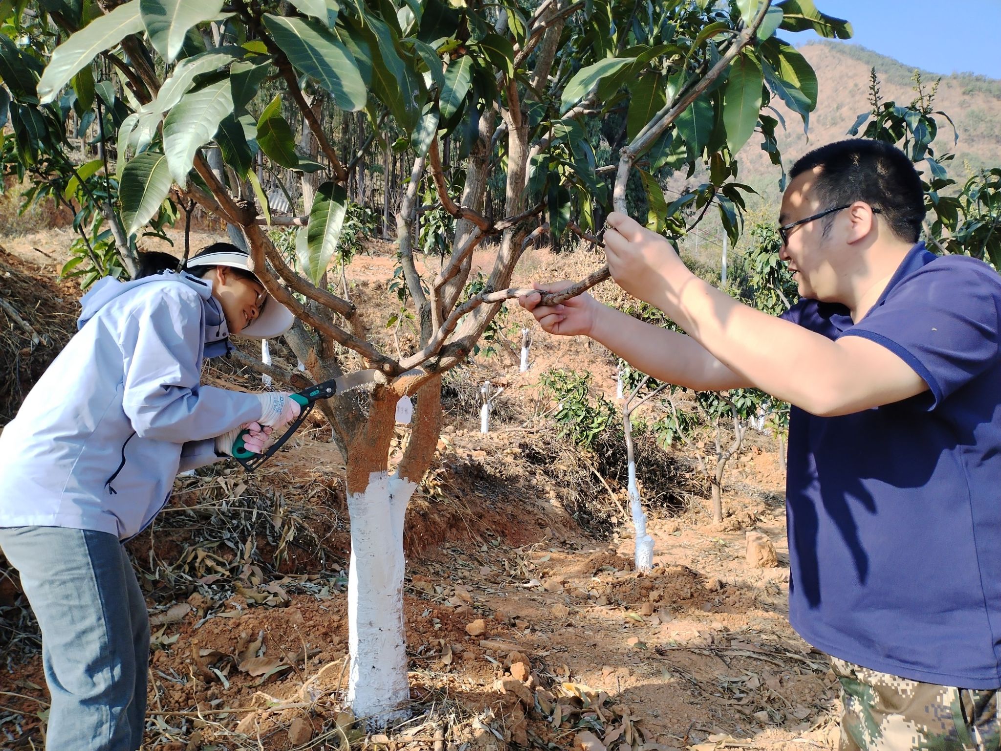 躬身责任田,汗水润民心。理论讲解结束后,干部职工迅速奔赴各自挂牌认领的芒果树,挥锹开沟、修枝整形、防病治虫、浇水施肥,果园里工具作响、笑语相和,奏响春日劳作的奋进乐章。大家俯身泥土、精耕细作,在实践中熟悉农时、掌握农技、体悟农情,从“办公室”走向“田间地头”,从“指挥员”变身“技术员”“勤务员”。年轻干部在劳动中加深对产业的理解、增进对群众的感情,老同事传经验、教方法,干群同心、同向同行,让每一棵芒果树都成为联结民心、助力增收的“连心树”“致富树”。