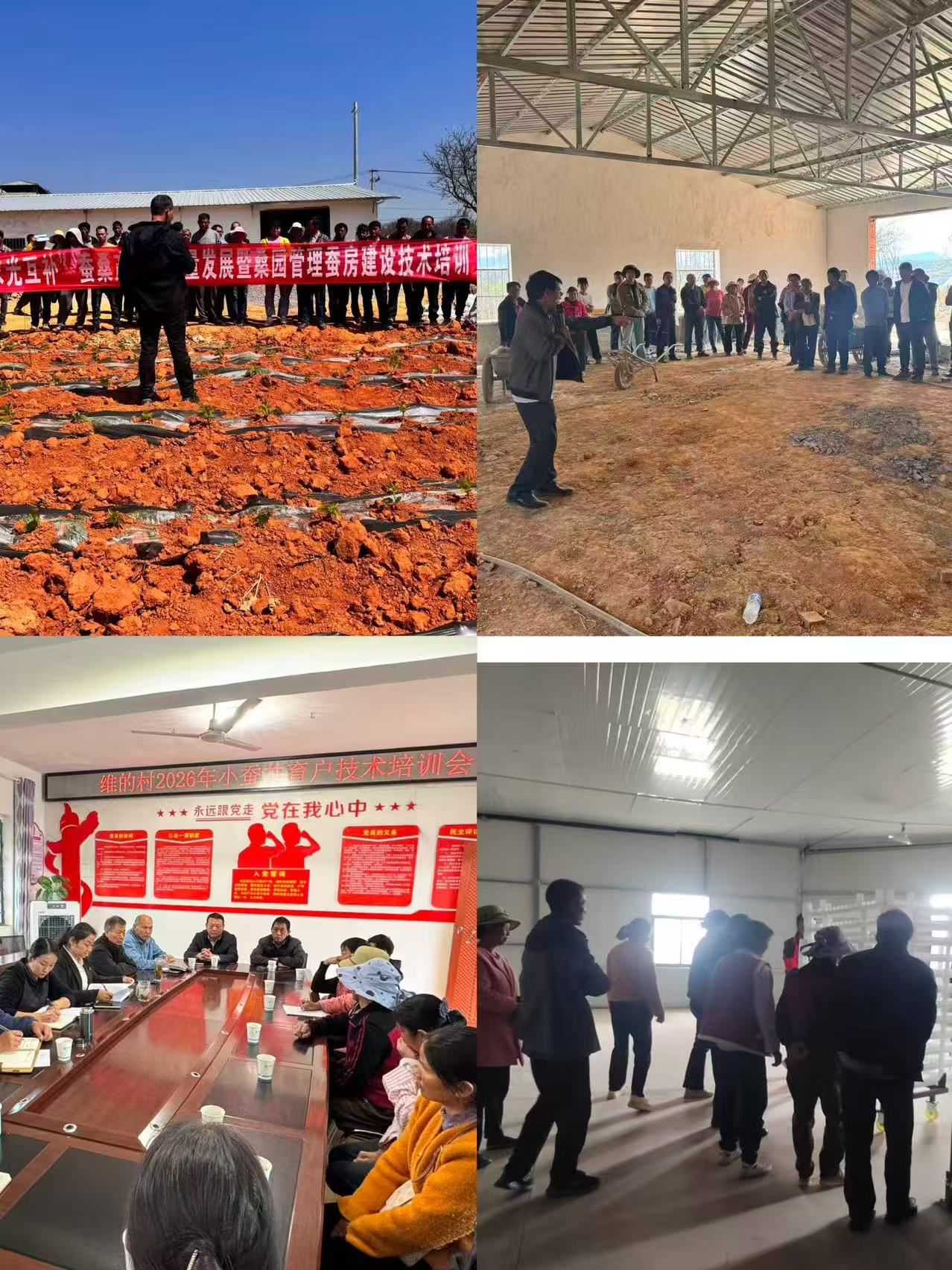 党建引领聚合力,筑牢产业发展“红色堡垒”。积极构建“党组织引领、合作社带动、农户参与、企业兜底”的联动发展体系,将党组织建在产业链上、党员聚在产业链上、服务沉在产业链上。推行“党支部+合作社+农户+企业”的模式,由7名党员致富带头人牵头,整合板下闲置空间,集聚种植大户29人发展“板下种桑”1760亩,2025年收入189.4万元,真正实现“板下种桑”的“阳光红利”惠及村集体及群众。让党旗在蚕桑产业一线高高飘扬,凝聚起“心往一处想、劲往一处使”的发展合力,推动蚕桑产业从“分散经营”向“集群发展”转型,夯实产业高质量发展的组织根基。