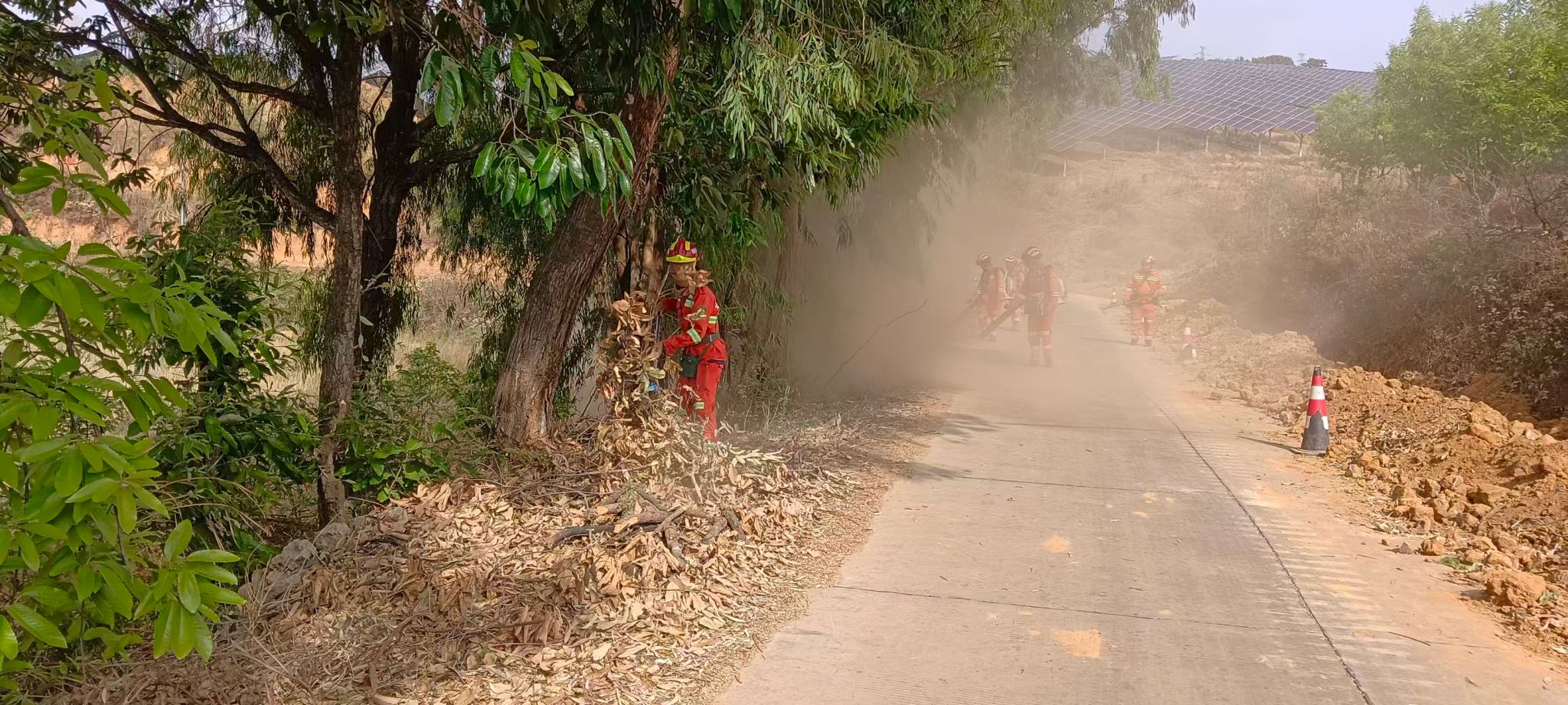 源头管控“严”字当头:在林区主要路口设置防火检查卡点,严格落实进山登记、火种收缴制度,杜绝火源入山;对全乡坟山墓地、板栗林、光伏电站周边等高风险区域开展拉网式排查,清理林下枯枝、杂草,消除火灾隐患。
