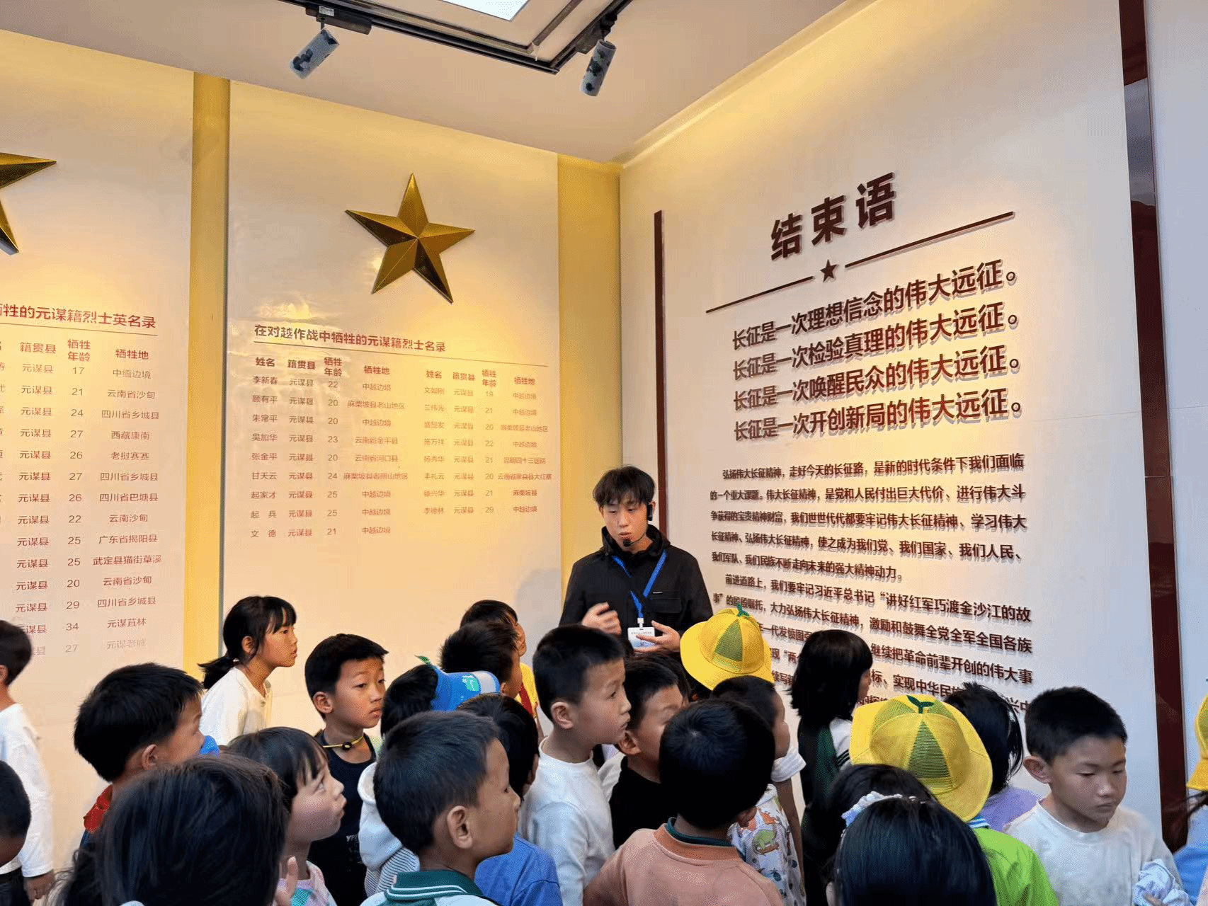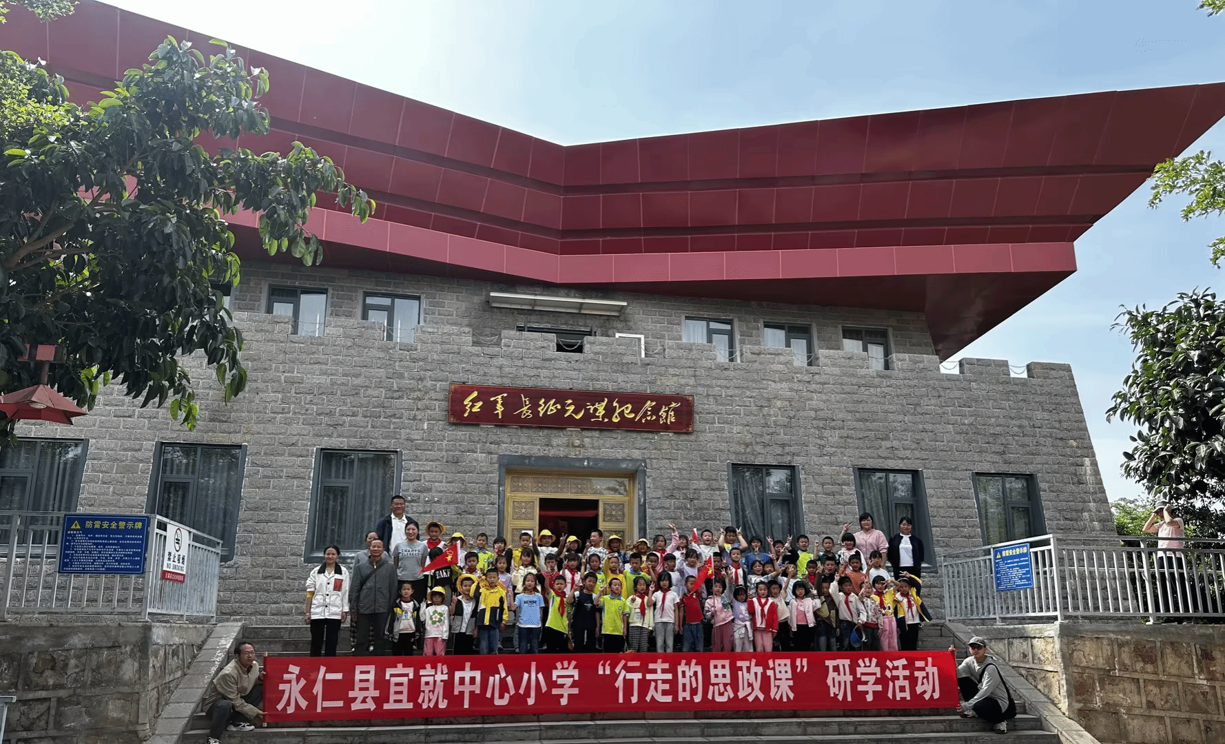 为深化思政教育实践,传承红色基因,厚植青少年爱国情怀。近日,永仁县宜就中心小学组织一年级师生前往红军长征元谋纪念馆,开展“行走的思政课 ”红色研学实践活动,让同学们在实地探访中感悟长征精神,在沉浸式体验中接受红色洗礼,推动思政教育从课堂走向校外、从理论走向实践。
