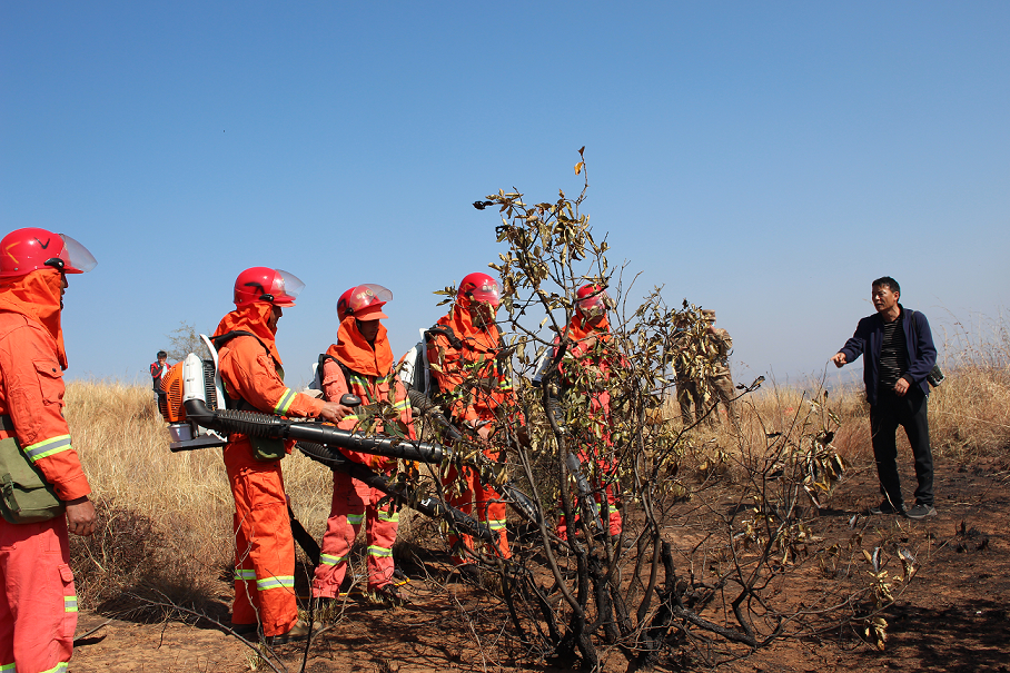 火情就是命令,安全重于泰山!全体专业扑火队员迅速携带装备到达指定“火灾”现场,在统一调度下,扑火队员按照火场指挥员命令,采取多点突破、分段合围等战术战法进行灭火,风力灭火机与水泵结合,对火场火势形成有效阻击。经过一个小时的奋战,大家齐心协力将“大火”彻底扑灭,圆满完成了此次演练任务。