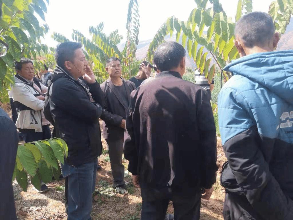 在拉姑释迦基地上,永兴傣族乡副乡长王科富同志介绍释迦种植情况并交流了种植心得。