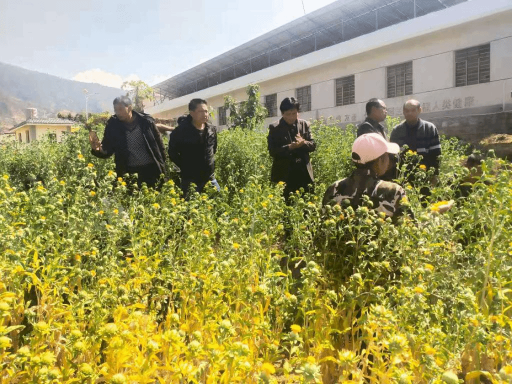 在永兴河两岸连片800多亩红花基地上,合作社理事长张喜坤同志介绍了引进红花种植及收益情况,目前,永兴傣族乡利用大春生产后种植红花2300亩,并现场对红花进行了采摘。