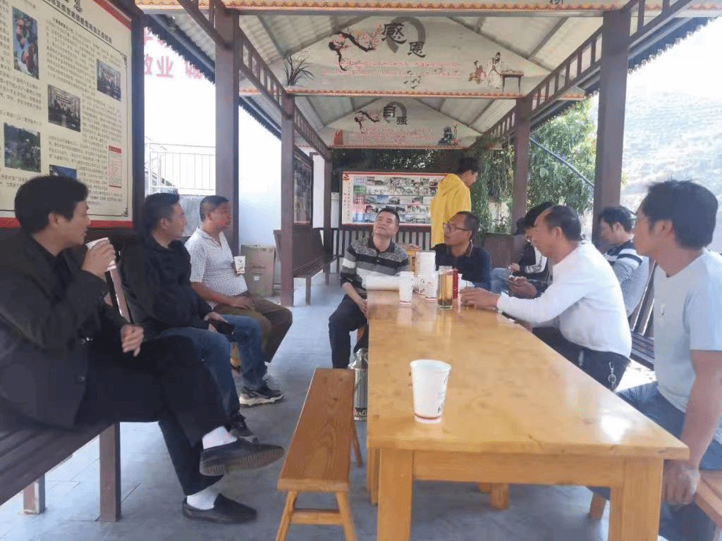 在昔丙村委会文化走廊上,考察组一行与永兴乡昔丙村委班子成员交流了感受和工作,认为永兴傣族乡红花产业非常值得学习借鉴,勐莲村可以充分利用独特气候及现有种养殖优势发展种植红花,更好地带动群众稳步增收致富,接续推进巩固拓展脱贫攻坚成果同乡村振兴有效衔接,多措并举巩固脱贫成果。