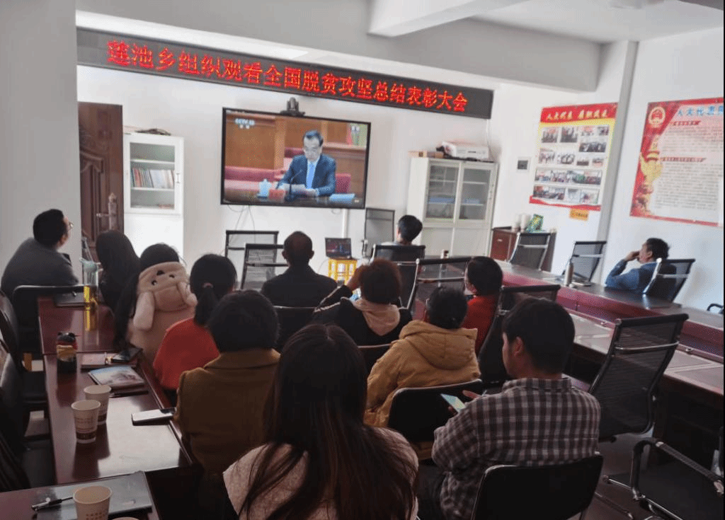 全国脱贫攻坚总结表彰大会于2月25日上午在北京人民大会堂隆重举行,习近平总书记向全国脱贫攻坚楷模荣誉称号获得者颁奖并发表重要讲话。早上10:00,莲池乡干部职工准时在三楼会议室集中观看直播,向为脱贫攻坚工作辛勤付出的英雄们致敬!