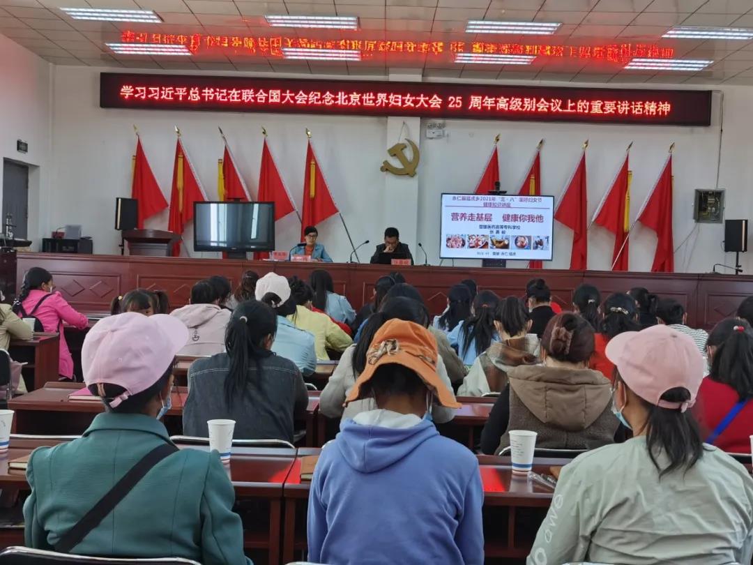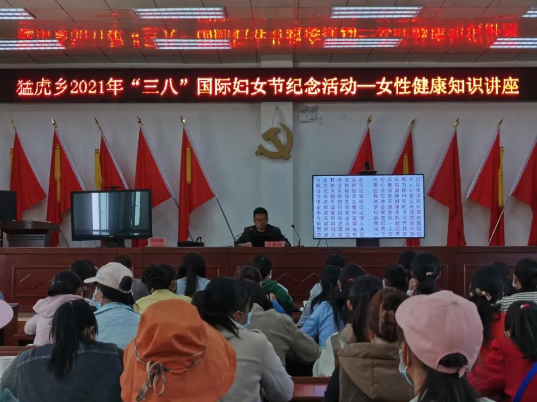 阳春三月,春风和煦,在这个阳光明媚的日子里,村级妇联组织刚换届结束,“三八”国际妇女节即将来临之际,为丰富乡村妇女干部的业余生活,缓解紧张繁忙的工作压力,增强乡村妇女干部的工作积极性和创造性,发扬“团结拼搏、开拓进取、与时俱进,无私奉献”的精神,使妇女干部们能全身心投入到乡村振兴战略中。近日,猛虎乡妇联组织乡级女干部职工、女驻村工作队员和各村妇联主席、副主席和执委共计100余人,开展2021 年“三八”国际妇女节七大系列纪念活动之“学党史、颂党恩、办实事”主题活动和女性健康知识讲座。