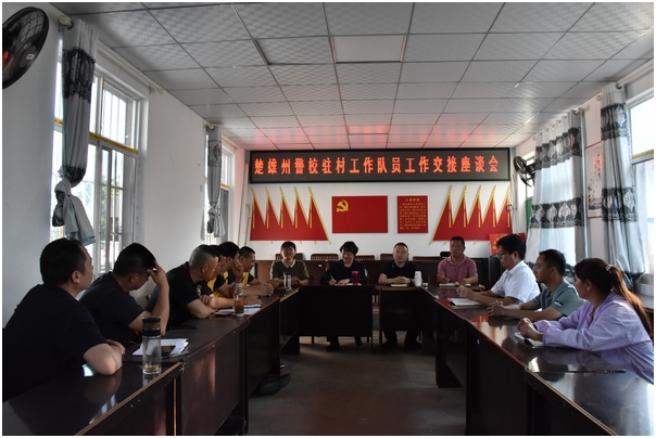 5月13日,楚雄警校党委书记、校长陈英带领新队员前往拉利坪村与老工作队员进行工作交接,并召开座谈会。永仁县委常委、县委政法委书记杨健,宜就镇、拉利坪村委会主要领导参加座谈会。