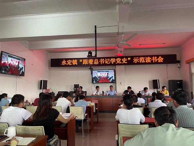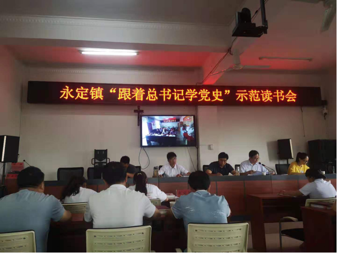 为扎实开展党史学习教育,用实际行动践行“学党史、悟思想、办实事、开新局”工作要求,切实把党史学习教育成效转化为服务群众的动力,5月24日早上,永定镇利用“云视讯”高清视频会议系统平台召开“跟着总书记学党史”示范读书会,全镇干部职工及12个村(社区)干部共计126人参加学习。