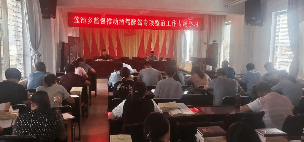 召开一次警示教育大会。利用每周一干部职工会,莲池乡针对近年来我县查处的酒驾醉驾违纪违法典型案件进行集中学习,通过“以案为鉴”,督促引导广大党员、公职人员遵守国家法律法规,树牢纪法意识,规范日常行为,维护社会良好秩序。