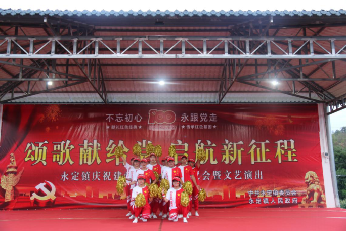 在热烈庆祝中国共产党成立100周年之际,为深入贯彻党的十九大精神,激发广大党员干部的爱国主义热情和投身基层工作的激情,进一步提高党员的责任感、使命感和荣誉感,6月29日晚上,永定镇党委、政府在乍石村委会文化活动广场组织开展“颂歌献给党启航新征程”庆祝建党100周年文艺演出活动,为辖区居民群众送上一场别开生面的视觉盛宴。