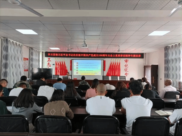 为深入学习贯彻习近平总书记在庆祝中国共产党成立100周年大会上的重要讲话精神,推动党史学习教育走深走实,9月6日上午,维的乡特邀请县委党校肖莹莹老师开展学习贯彻习近平总书记“七一”重要讲话精神专题宣讲,乡全体干部职工共58人参会。