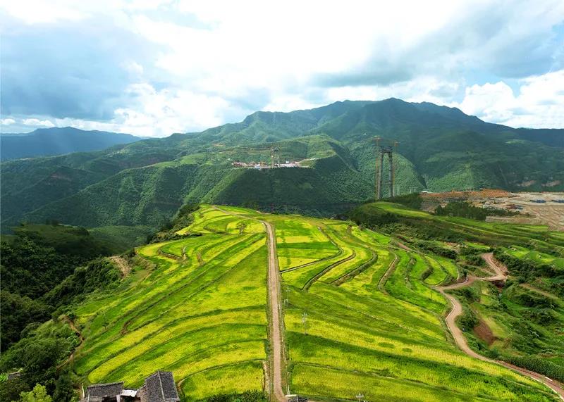 片片农田被成熟的水稻染成一湾又一湾的金黄