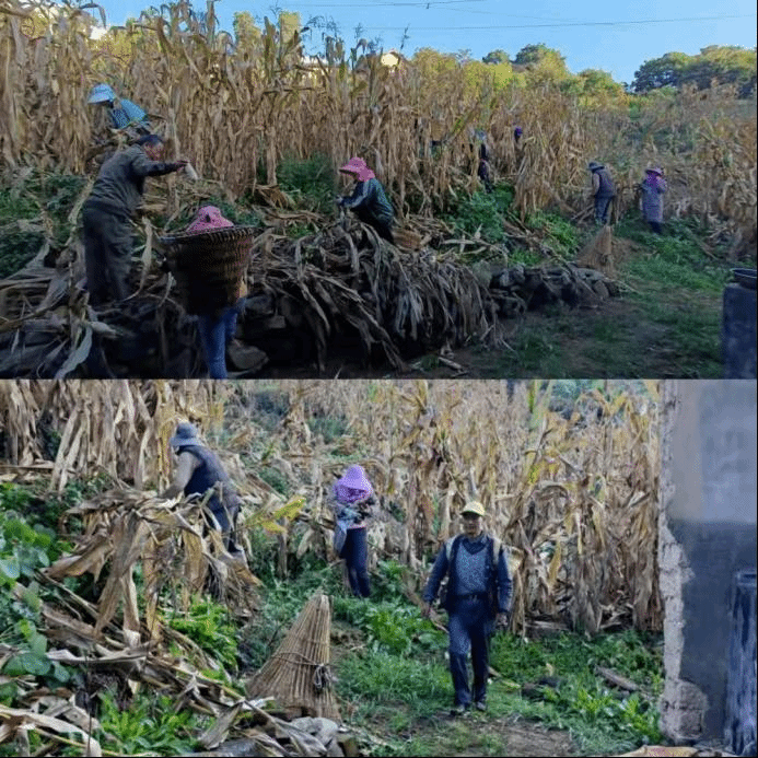 么吉利党支部书记鲁绍华与村党总支书记、驻村第一书记说明情况后,发动村干部及支部党员为苏绍芬家抢收玉米。么吉利村党支部把主题党日搬到困难群众地里,10月26日下午驻村书记杨有顺、支部书记鲁绍华带领支部党员到地里收割玉米,附近群众热心帮忙一起参与抢收。党员干部和群众你一背篓我一背篓,忙活一下午帮助苏绍芬家完成玉米抢收,运到家里。晚上带上党旗,把支部大会开到困难群众家里,开会学习时不忘帮助苏绍芬家剥玉米。把党史学习教育学习落到切实为困难群众办实事、办好事上。经过27名党员干部和群众的热心帮助,苏绍芬家3000余斤的玉米全部撕皮完成晾晒,可增加收入4000余元。