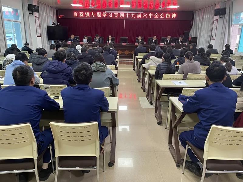 11月22日,宜就镇召开专题学习会议集中学习党的十九届六中全会精神,会议全文学习了《中国共产党第十九届中央委员会第六次全体会议公报》,镇全体干部职工、各村书记(主任)参加会议。