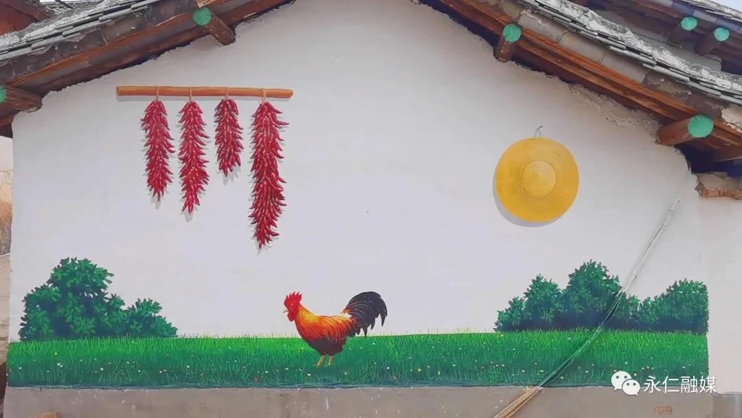 走进永仁县宜就镇宜就村子鲁的新队组,浓郁的农耕文化气息扑面而来,村道两侧一件件传统农耕器具悬挂墙面,一幅幅特色墙绘把村庄装点得绚丽多彩,使原本单调的墙面顿时有了生机。