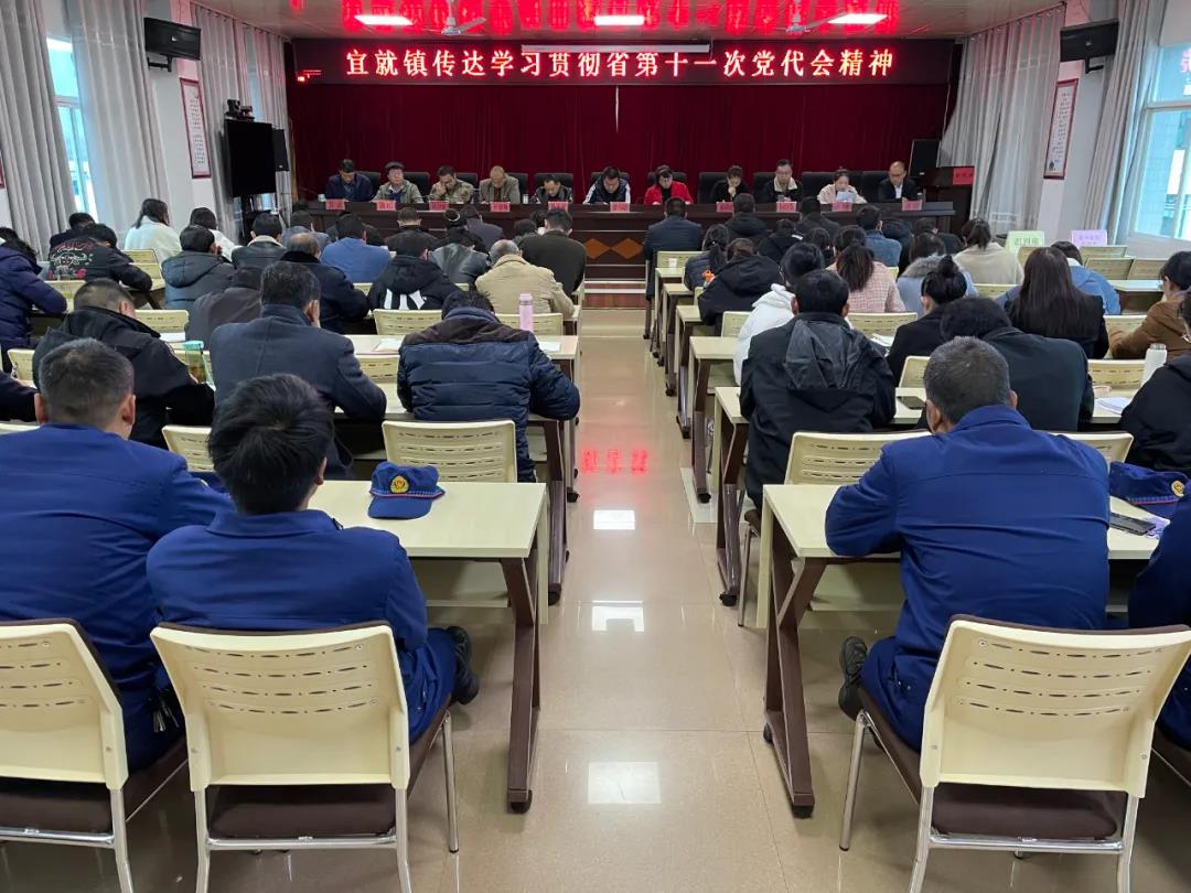12月6日,宜就镇组织召开会议,传达学习中国共产党云南省第十一次代表大会精神,镇领导班子成员、全体干部职工、各村党总支书记、驻村工作队队员参加会议。