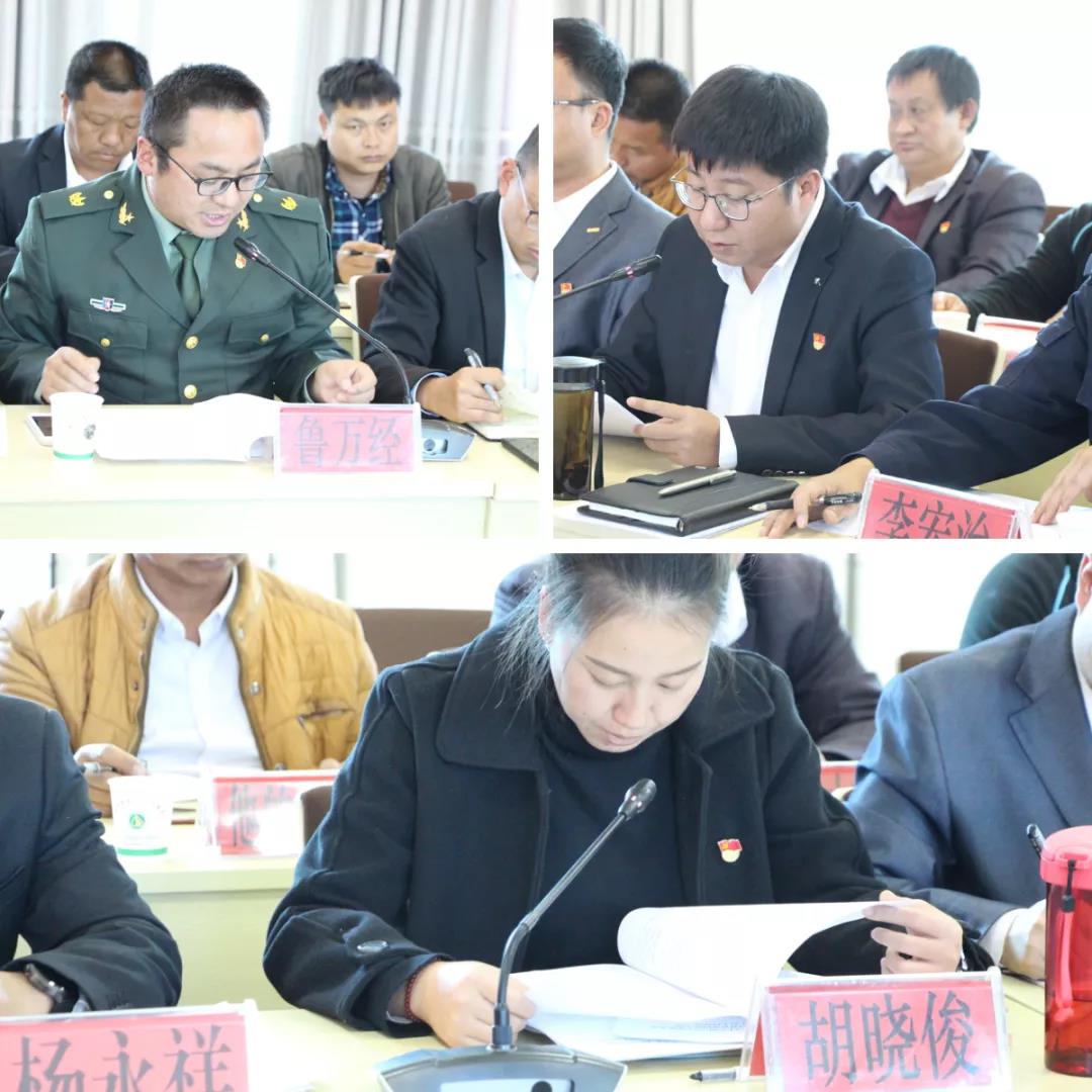 镇党政班子成员、12个村党总支书记、各办公室(中心)、站(所)负责人参加会议、县委第三巡回指导组黎朝德、起林涛旁听指导。