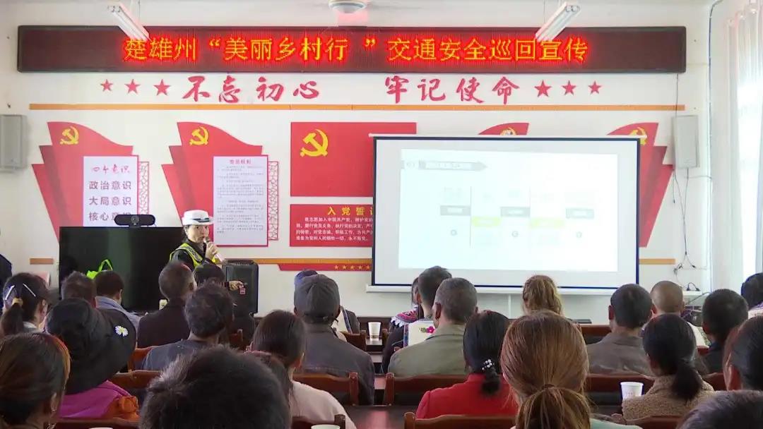 为切实提高广大人民群众交通安全意识和文明安全出行意识,有效预防和减少农村地区道路交通事故的发生,近日,云南省楚雄彝族自治州公安局交通警察支队宣传小分队深入永仁县宜就镇地什苴村委会开展“美丽乡村行”交通安全宣传活动,把交通安全知识普及到农村地区,为“交通安全文明村”创建营造了良好的氛围。