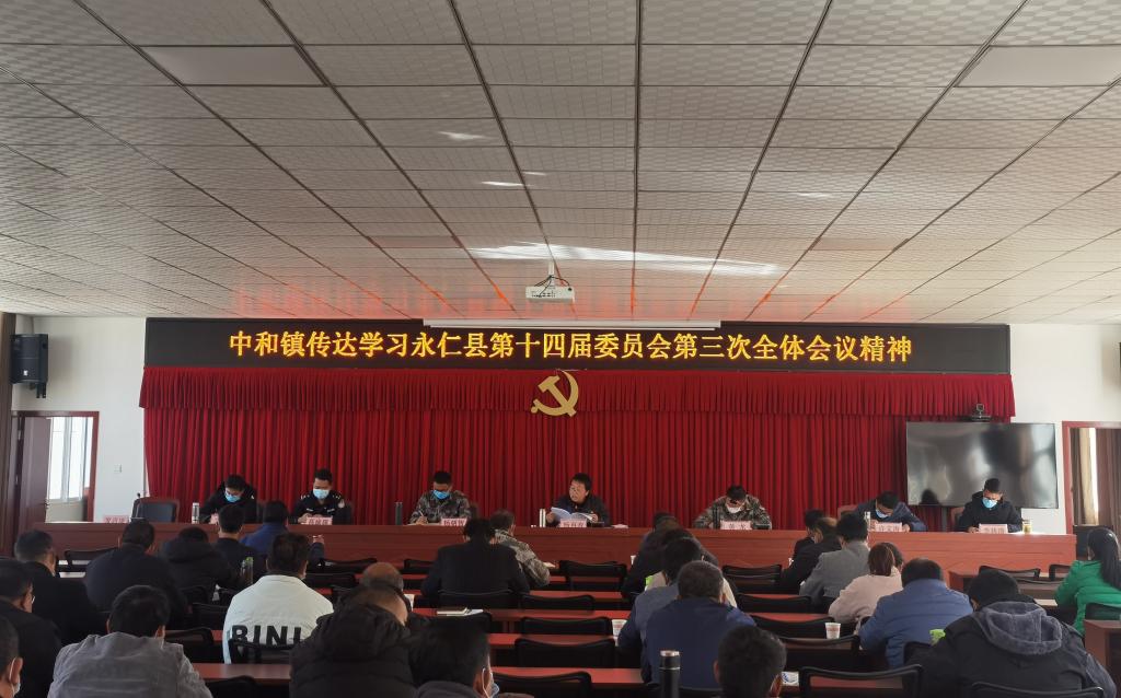 为深入学习贯彻永仁县第十四届委员会第三次全体会议精神,切实把精神实质转化为工作动力,结合当前党史学习教育,总结好2021年工作经验、谋划好2022年工作目标,12月31日下午,中和镇党委书记杨再春对会议精神进行传达领学,党政班子成员、驻村第一书记、全体驻村工作队、全体干部职工70余人参加。