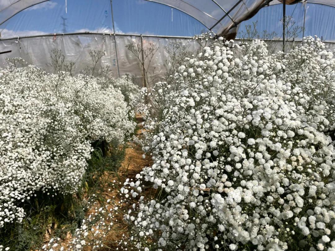 李建祥家种植有70亩鲜花,种植有腊梅、满天星和尤加利等,作为家庭瓶插花,进入老百姓的日常生活,今年产值达100万元以上,春节前销量好,李建祥也乐得笑呵呵。