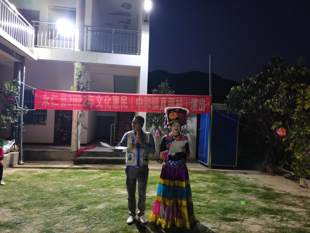 为进一步丰富群众精神文化生活,推动农村精神文明建设,结合新时代文明实践活动,3月28日晚,永仁县2022年文化惠民“送戏下乡”文艺演出活动走进中和镇直那村,吸引了无数群众驻足观看,为广大村民送上了一场“文化盛宴”,进一步打通公共文化服务的“最后一公里”,让人民群众坐在家门口就能欣赏到精彩的文艺演出,近距离感受文化的魅力。本次活动由永仁县文化和旅游局主办,永仁县文化馆承办,中和镇文化和旅游广播电视体育服务中心、直那村委会协办,由直那上村文艺演出志愿服务队开展演出活动。