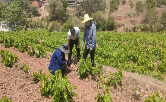 (宜就镇党委书记钟廷伟深入田间了解桑树长势及中耕管理情况)
