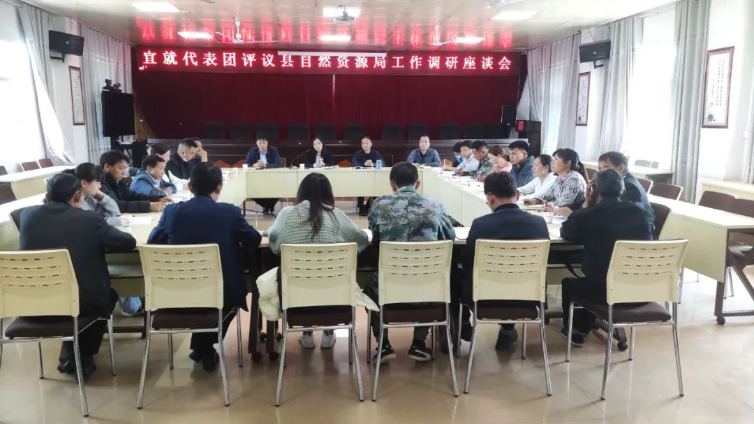 4月19日县人大常委会农环资委吴佳芸主任一行6人到宜就镇召开评议自然资源局调研座谈会。镇人大主席、县十八届人大代表、镇相关站所负责人等20余人参加了会议。